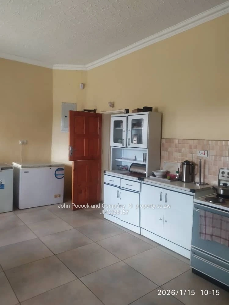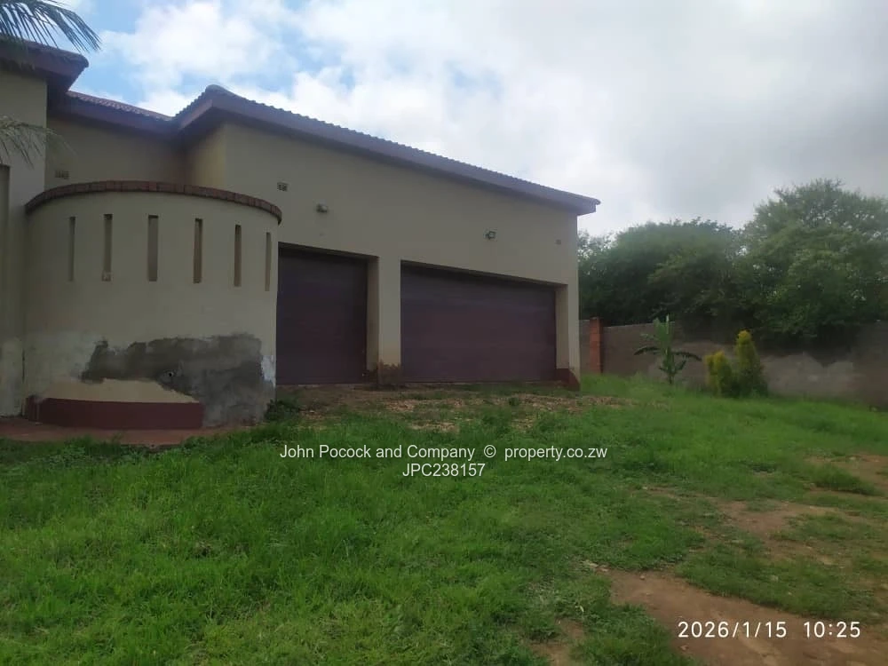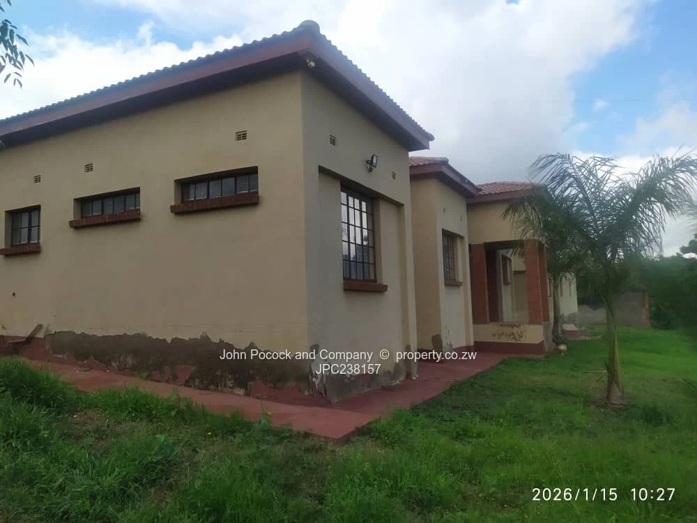 The main dwelling is thoughtfully designed around two distinct wings, with the living areas centrally positioned — ideal for extended family living, guests, or work-from-home arrangements. All rooms are finished with ceramic tiled flooring throughout, the two-wing main dwelling offers 5 bedrooms and 4 bathrooms. There is a separate self-contained 2-bedroom cottage currently generating rental income, plus borehole, solar, and triple garage. Extras include a single staff accommodation and chicken coop, an electric gate, and a fully walled perimeter. Exceptional space with scope to personalize.