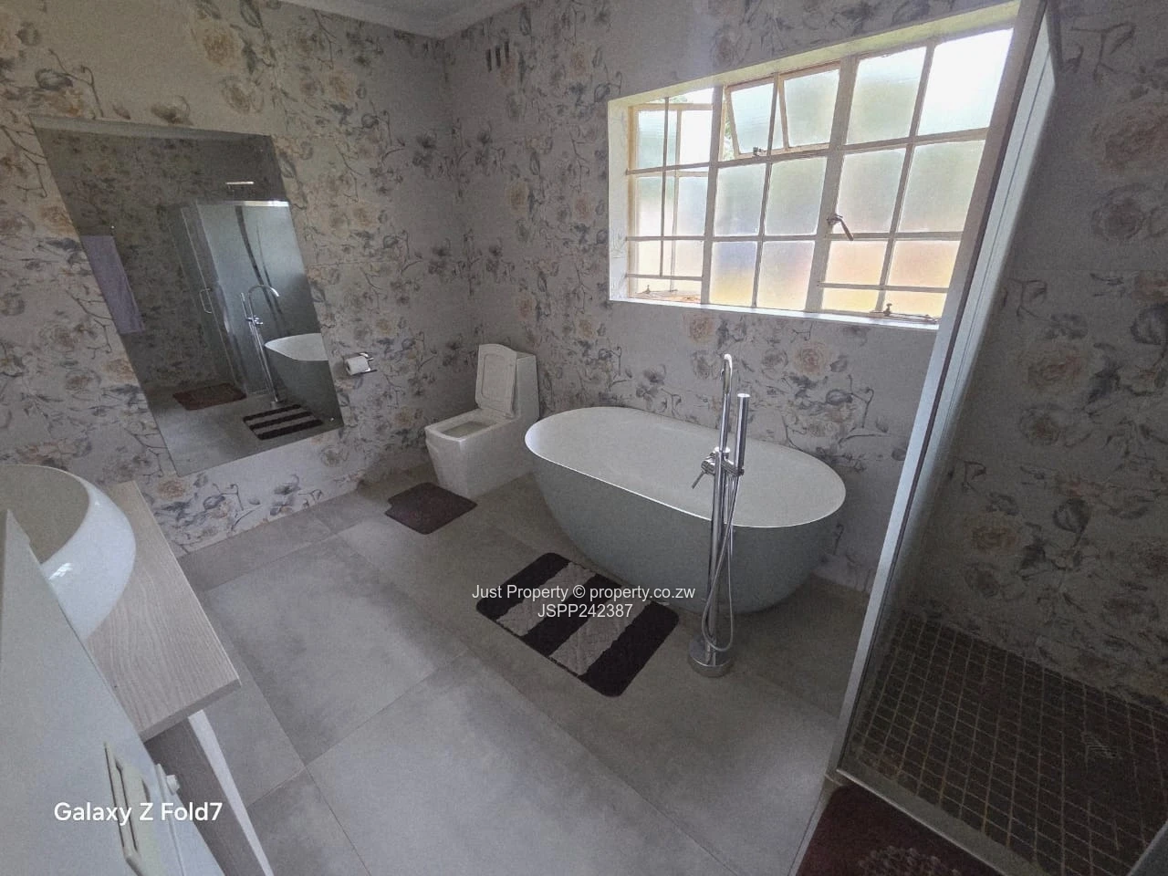Immaculate family home in sought-after Borrowdale, Harare North — a rare 4,000 m² stand with a spacious 600 m² residence offering excellent family living and entertaining. The house features five comfortable bedrooms and three bathrooms. As seen in the photos, bright tiled bedrooms benefit from large windows, built-in wardrobes and soft neutral finishes that flood rooms with natural light. The guest bathroom presents contemporary fittings, a vanity basin and tasteful patterned wall finish for a fresh look.