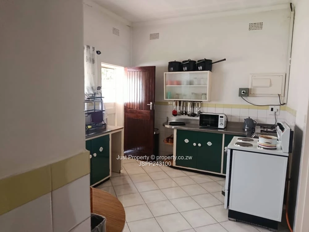 Charming Eastlea family home on a generous 1,300 m² stand with 200 m² of comfortable living space. This single-storey, walled property welcomes you with a neat paved driveway, electric gate and double lock up garage, manicured lawn and a shaded verandah perfect for morning coffee (photos show the tidy front garden and paved paths). Inside you’ll find three spacious bedrooms, the main bedroom with an en-suite, and two well-appointed bathrooms — one featuring a classic bath. Living spaces are fully carpeted and warm, with a formal combined dining room and a cozy lounge anchored by a stone fireplace and elegant light fittings. The fitted kitchen offers practical tile flooring and ample storage, while a separate storage room and dedicated staff quarters add real household convenience. Practical infrastructure includes municipal water, an additional 3 water tanks, a sewer system and secure perimeter walls. This solid, character-filled home in Harare East is ideal for a growing family seeking space, security and classic charm. Arrange your viewing today.