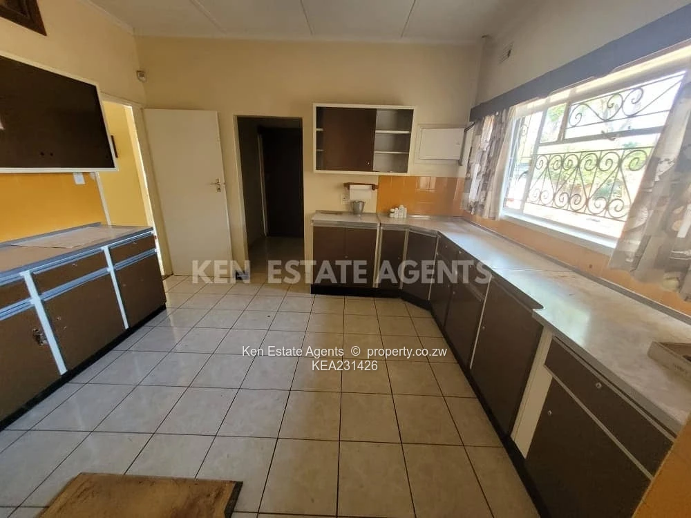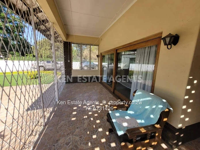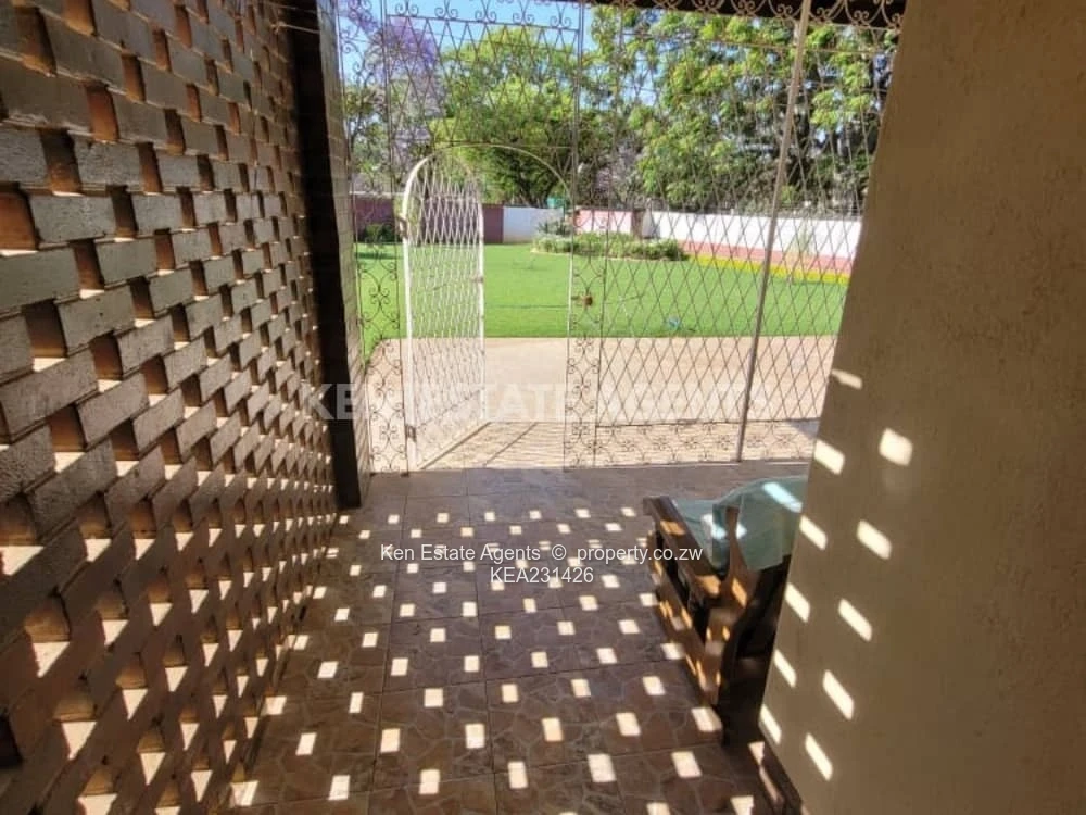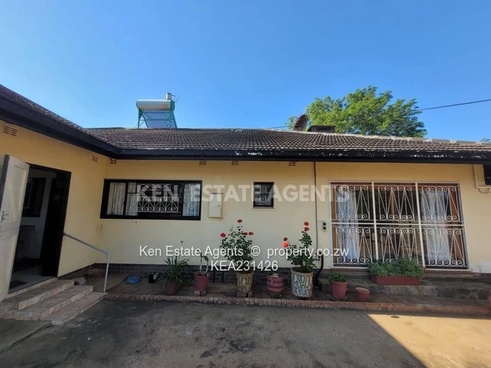 On 2 677 square meters. BUT, 3 bedrooms (mes) built in cupboards, lounge, dining, fitted kitchen with scullery. Bathroom and toilet. Verandah. Granny cottage with dining room. Double staff quarters. Solar system. Borehole, water tank. Walled and gated. $230 000