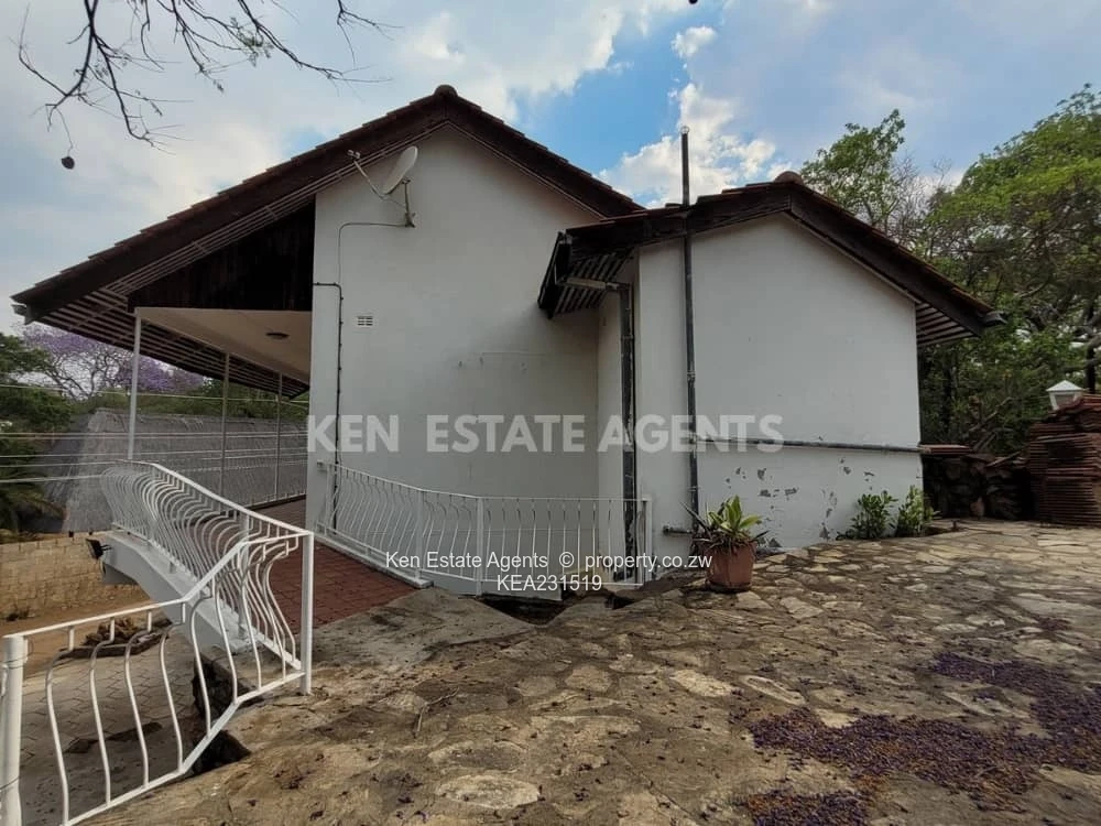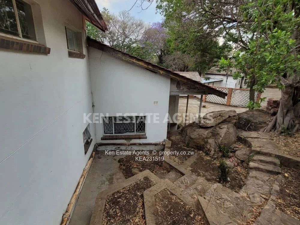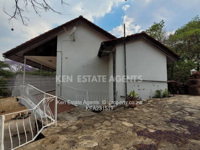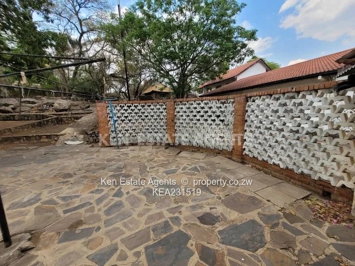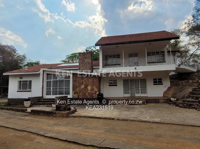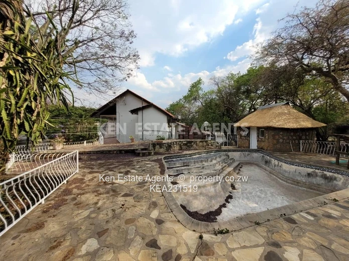 On split level. Brick under tile. Upper floor - Master bedroom with bathroom and toilet. Lower floor - 2 bedrooms (and potential for a third bedroom), lounge, dining, fitted kitchen, bathroom, toilet and laundry room. Outbuildings - Single lock up garage, tripple car shed and single carport. Double staff quarters. Storeroom. Swimming pool. 2 500 litre water tank. Water well.