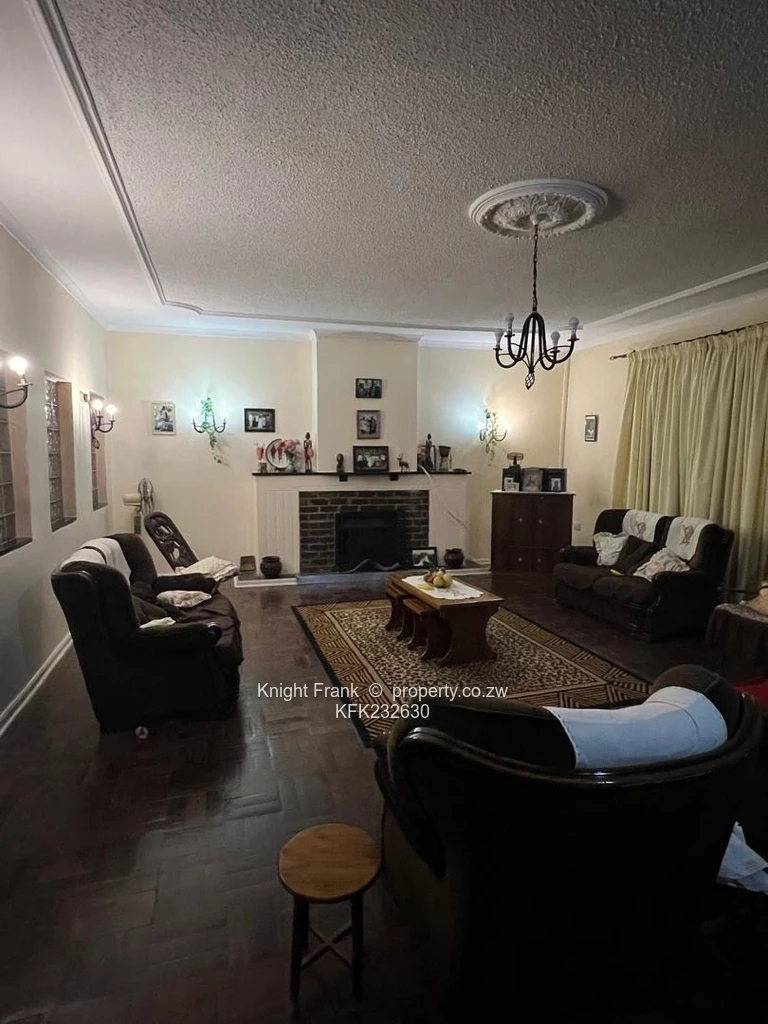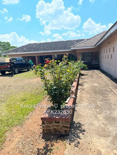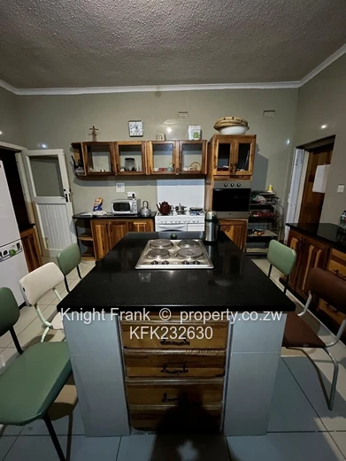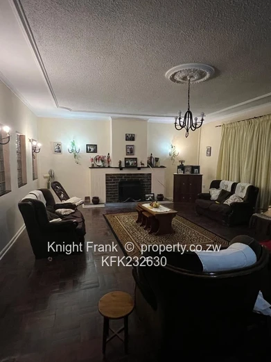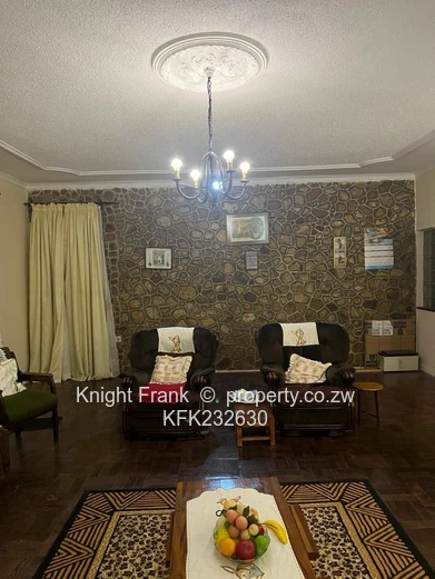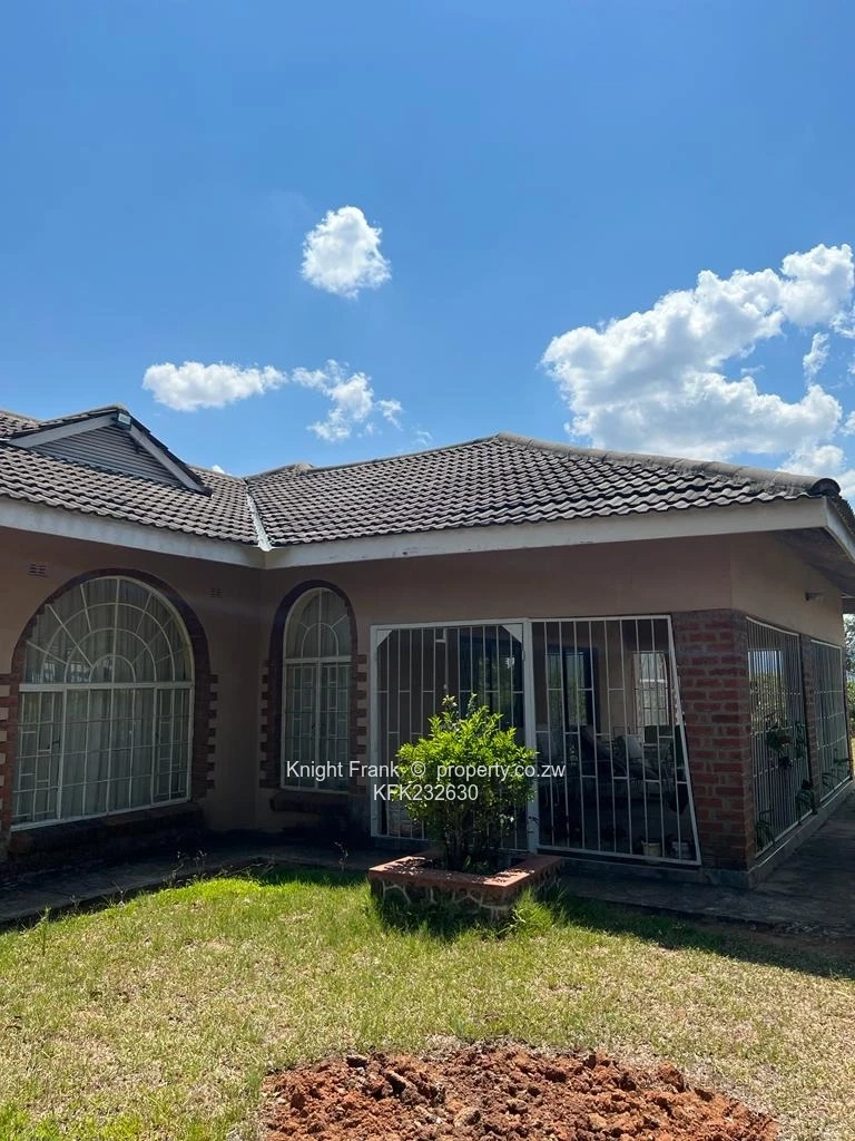 Charming family home for sale in the cool, scenic Vumba foothills — a rare parcel of privacy and space totaling 20,234 m² (about 2.02 ha) with a substantial 500 m² of comfortable living. This solid single-level residence offers 5 bedrooms and 3 bathrooms, generous reception rooms and beautifully detailed interiors. As seen in the photos, the home greets you with arched windows and secure verandas, a tiled roof and mature front lawn with brick planters and rose beds. Inside discover a warm formal lounge with feature stone wall, fireplace and parquet floors, elegant ceiling roses and chandeliers that give classic character. The well-appointed kitchen boasts timber cabinetry, a central island with hob and granite surfaces plus a built-in oven — ideal for family cooking and entertaining. Practical creature comforts include a borehole for reliable water supply and wide driveways with ample parking. With expansive grounds offering gardening, additional structures or hobby farming potential, this Vumba property combines peaceful rural living with easy access to local amenities, close to Whitehorse Inn