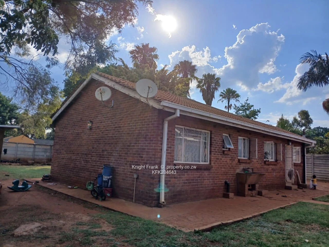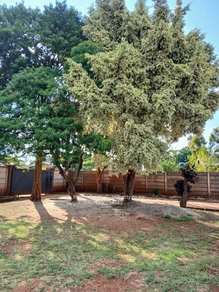Solid red-brick family home in desirable Westgate, Harare West — 3 bedrooms, 2 bathrooms on a generous 1,060 m² stand with a 400 m² building footprint. The single-storey layout offers spacious, well-proportioned living areas and large windows that flood rooms with natural light. Outside you’ll find a neat, flat garden with mature shade trees perfect for family play or entertaining (see garden photos), a secure walled perimeter and paved parking. Reliable water supply is assured by an on-site borehole and elevated storage tank on a steel stand (photo), ideal for Harare living. The exterior shows a charming pitched roof, bay-style window and opportunity to add value through cosmetic upgrades or extensions. Excellent for families or investors seeking space, security and water independence in a convenient Westgate location — viewing recommended.