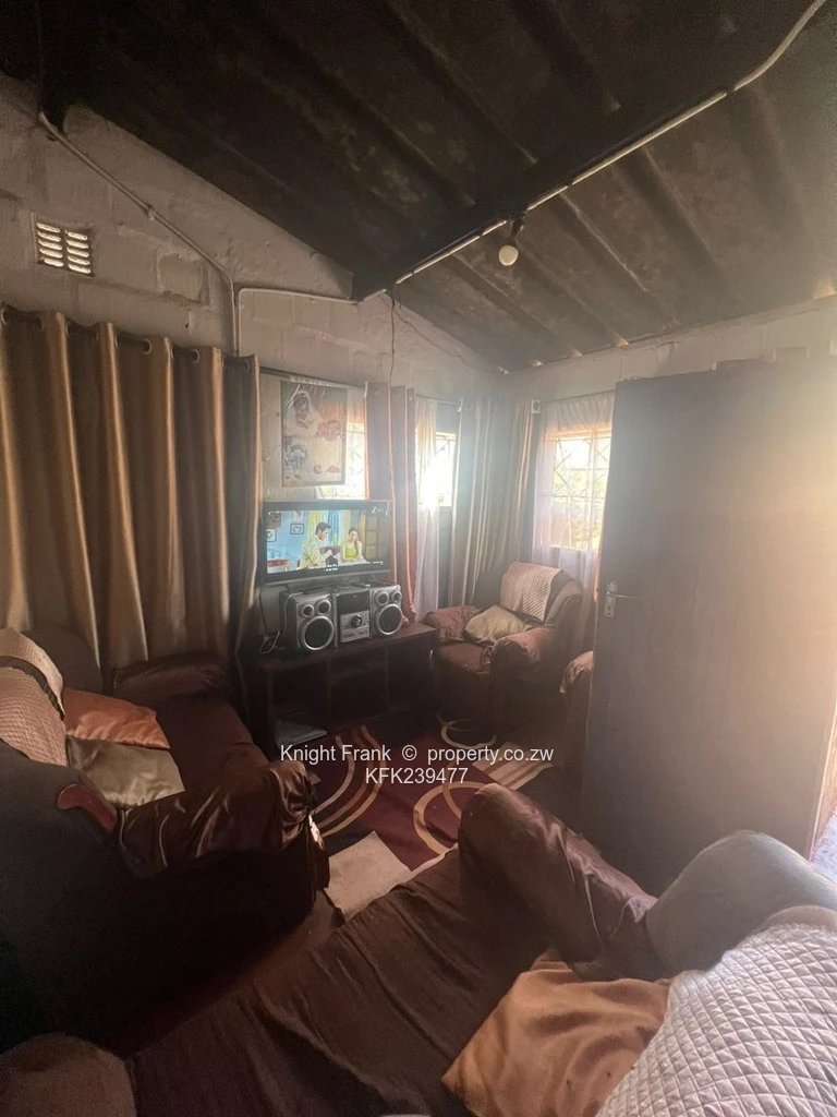 Solid, smart and ready — this neat 2-bedroom, 1-bathroom home in Mufakose (Harare high density) sits on a compact 180 m² stand with a 90 m² building footprint, perfect for first-time buyers or investors seeking reliable rental income. Constructed in durable blockwork and finished in white, the single-storey layout features secure, openable windows with burglar bars and a corrugated roof. The cosy lounge (shown) receives generous natural light and flows to a practical kitchen area fitted to accommodate a stove, fridge and storage. The recently tiled bathroom offers a modern shower recess and sanitary fittings.