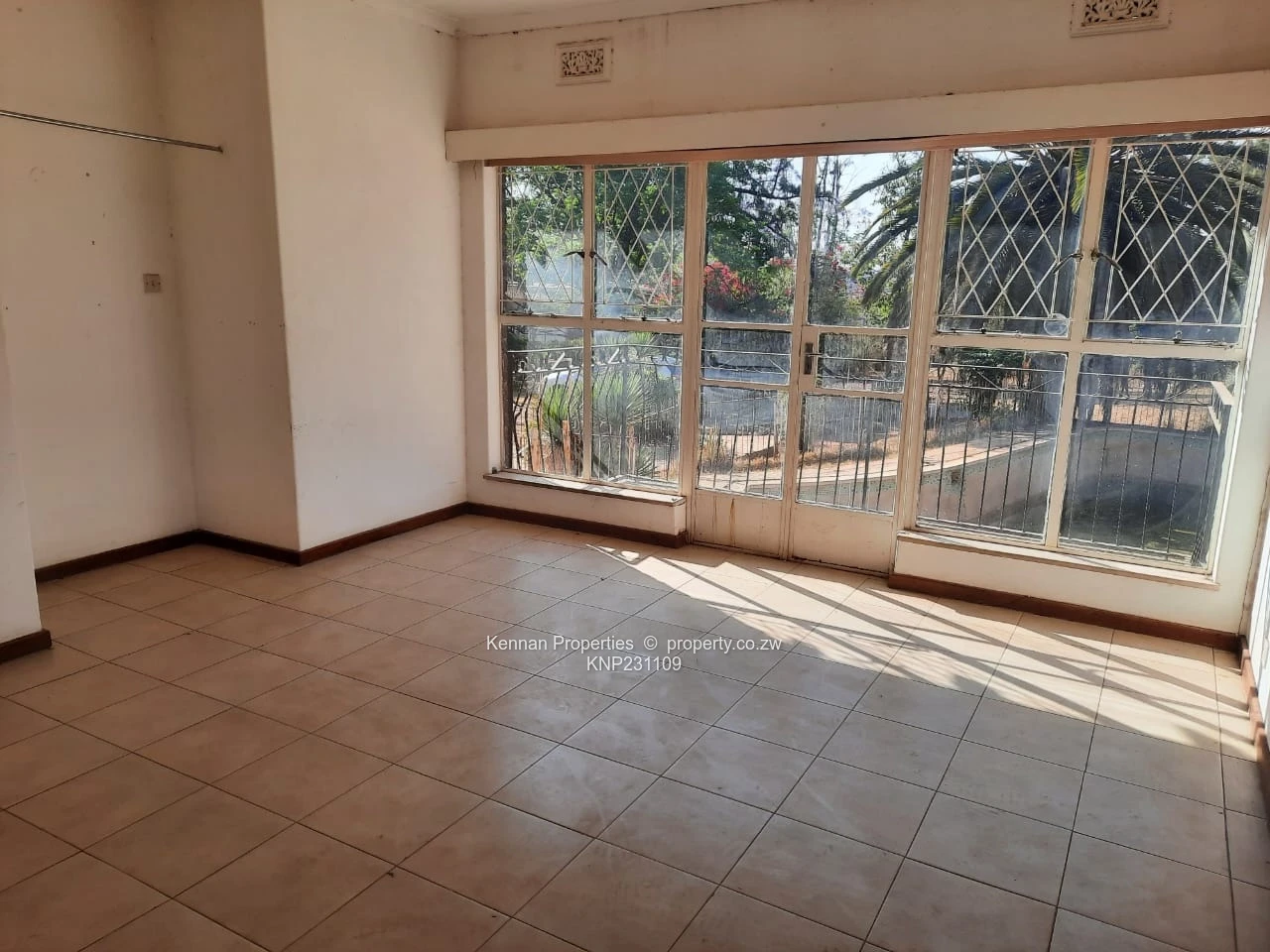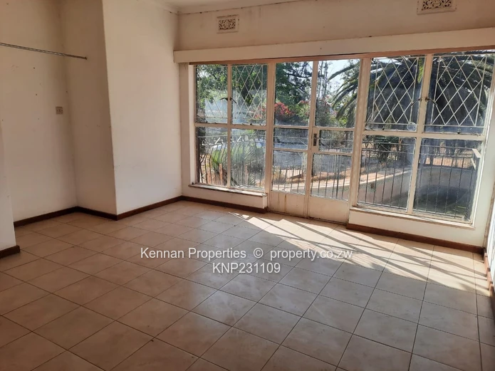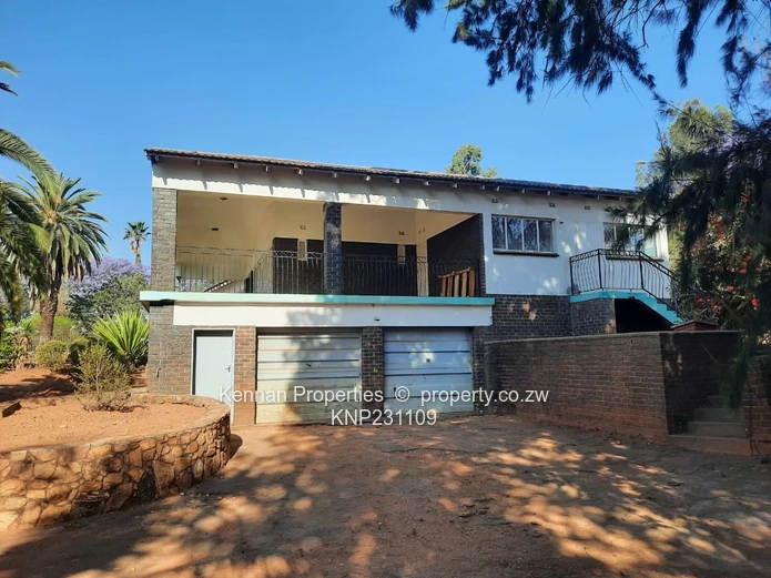 Situated on 5040sqm and tucked away on Le Roux Drive at the opposite end to Glenara Avenue, is a 4 bedroomed home -tiled throughout, with two bathrooms (mes). There is a large main lounge with windows opening onto the sizable elevated covered verandah, and a huge entrance hall which could easily constitute a second lounge. The dining room is separate, and there is a large v old kitchen with pantry. The double lock up garage/workshop is accessed from the kitchen down stairs and under the house. There is a Good borehole apparently though no evidence of that in the garden. There is also regular Council water. and 2x 5 000l water storage tanks tanks. This formerly gracious home is in need of a lot of upgrades and maintenance. The property is largely fenced... Walled on one side.. There is a large empty old pool and Double domestic quarters.