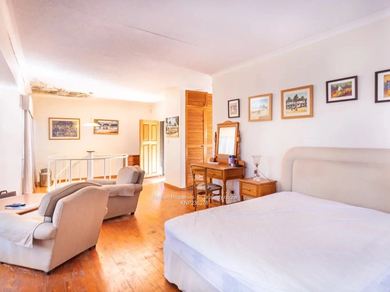 The main bedroom suite has a lounge with fireplace and private balcony, as well as a very large walk in wardrobe and en suite bathroom. Additionally, there are 2 bedrooms en suite, as well as a guest bathroom, and a possibility of a 4th bedroom, which is currently a TV lounge.