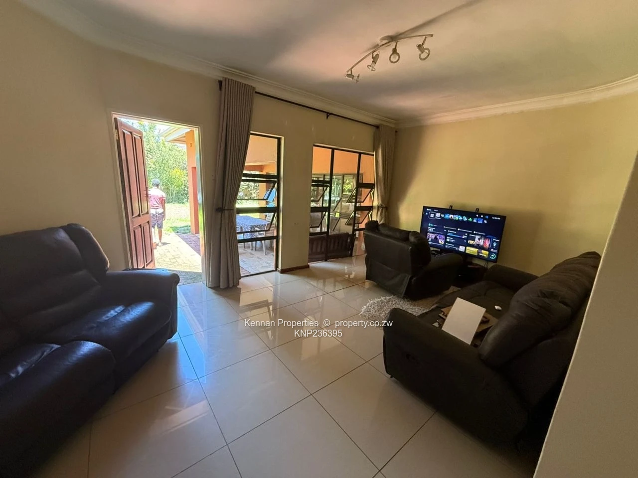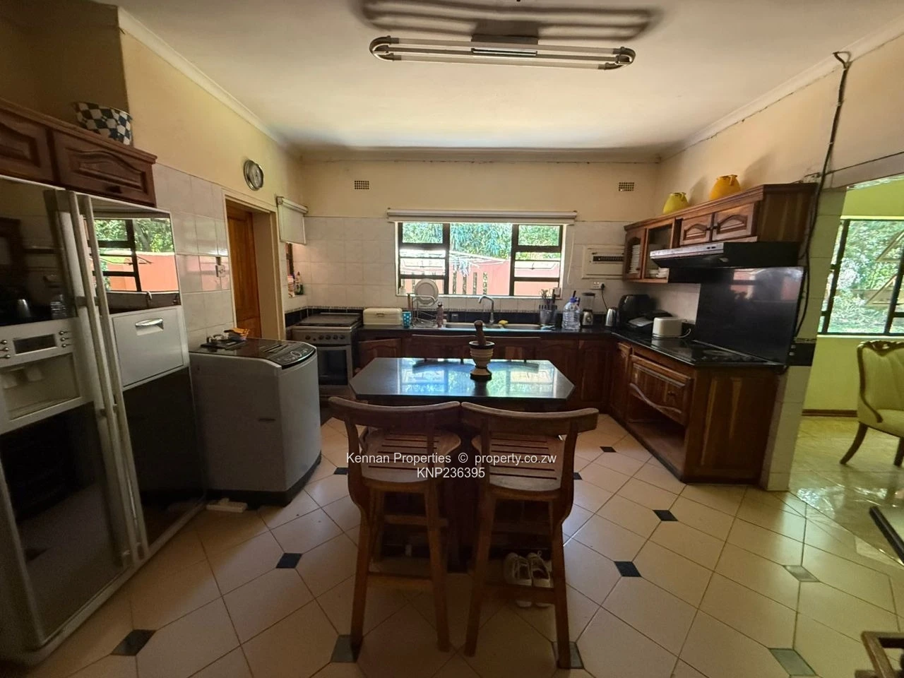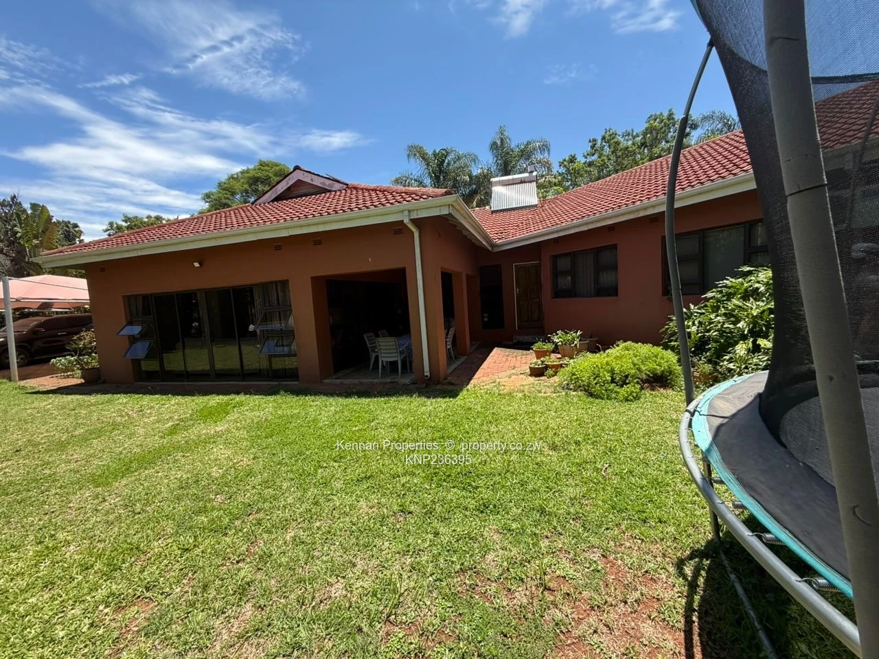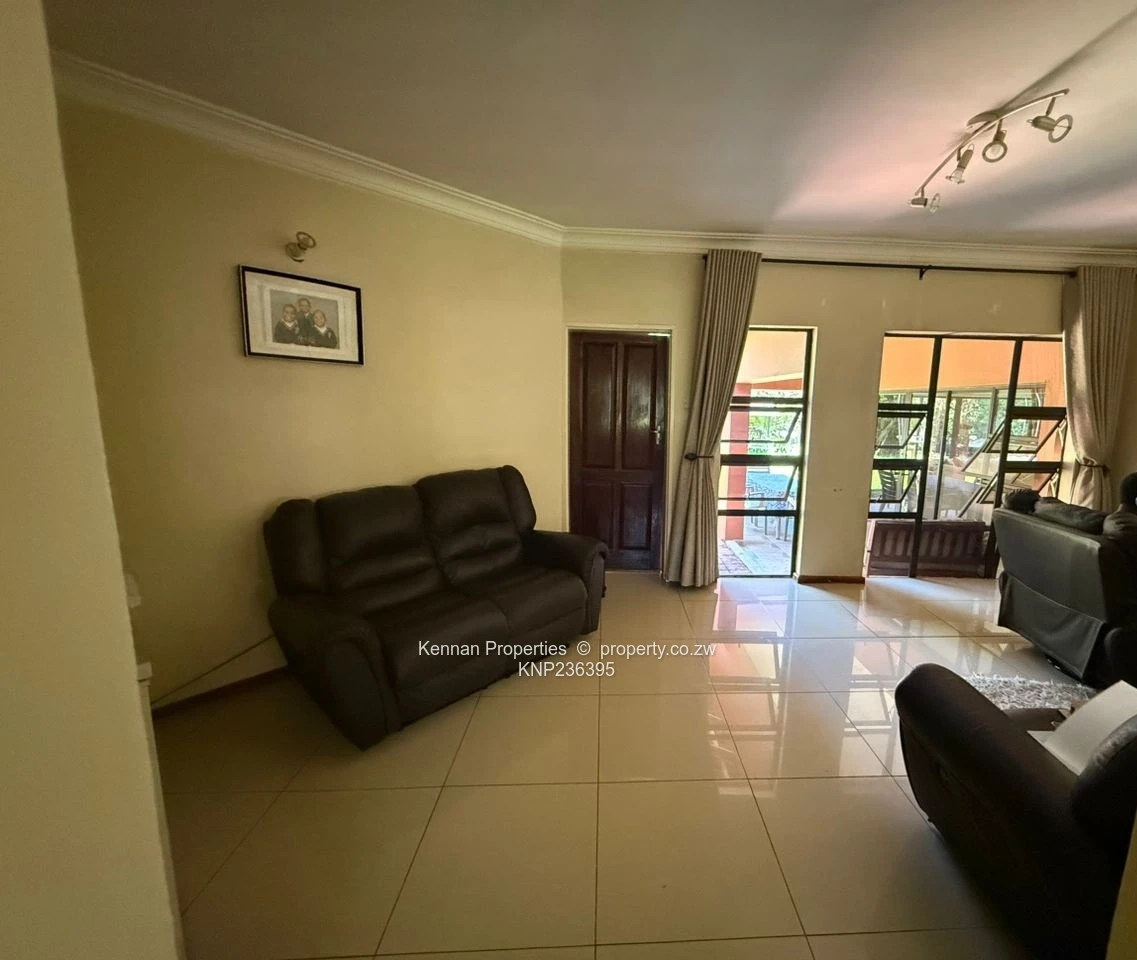 Lovely 4 bedroomed family home, featuring a lovely entrance hall serving as the welcoming heart of the home, setting a warm and inviting tone right from the front door. Two lounges, with air conditioning in the main lounge, the open area layout seamlessly connects the dining area to the lovely, fitted kitchen with granite tops and a breakfast counter. Two well-appointed bathrooms includes one with a shower and one with integrated bath and shower combo, a master ensuite with a walk-in closet and air conditioning, a practical home office, outside veranda, double carport, reliable borehole with 2500L water tank for ultimate convenience. Title Deeds available