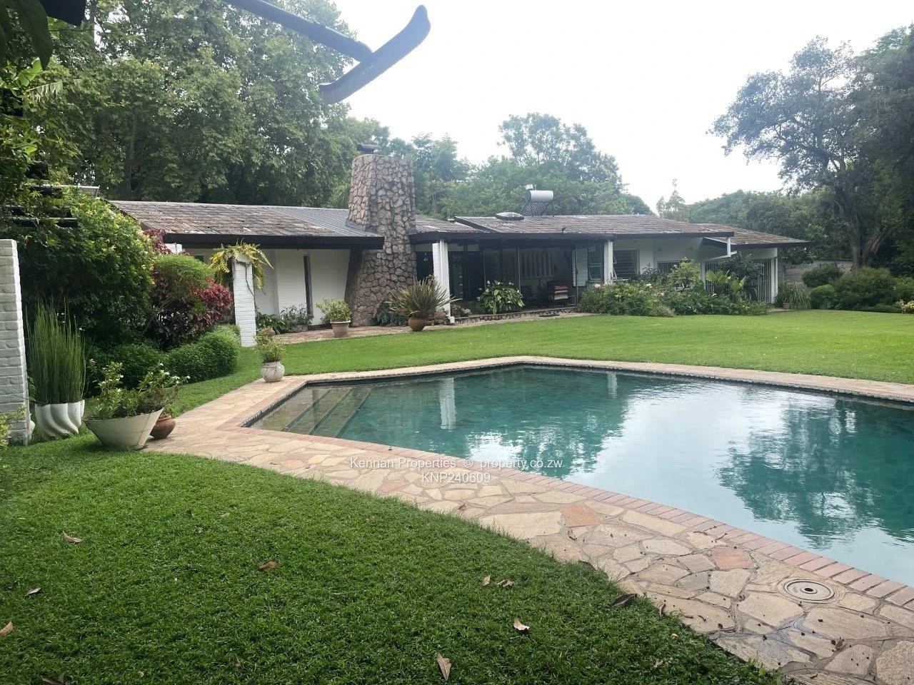 3.kva Solar system, 5000 litre water tank on a stand, nice borehole, swimming pool, double lock up garage, out buildings, walled, fenced and push gate.