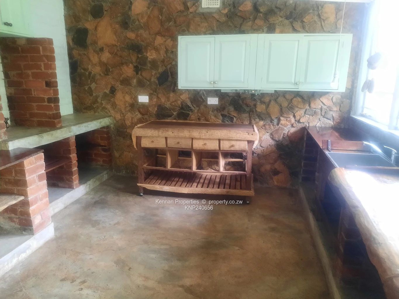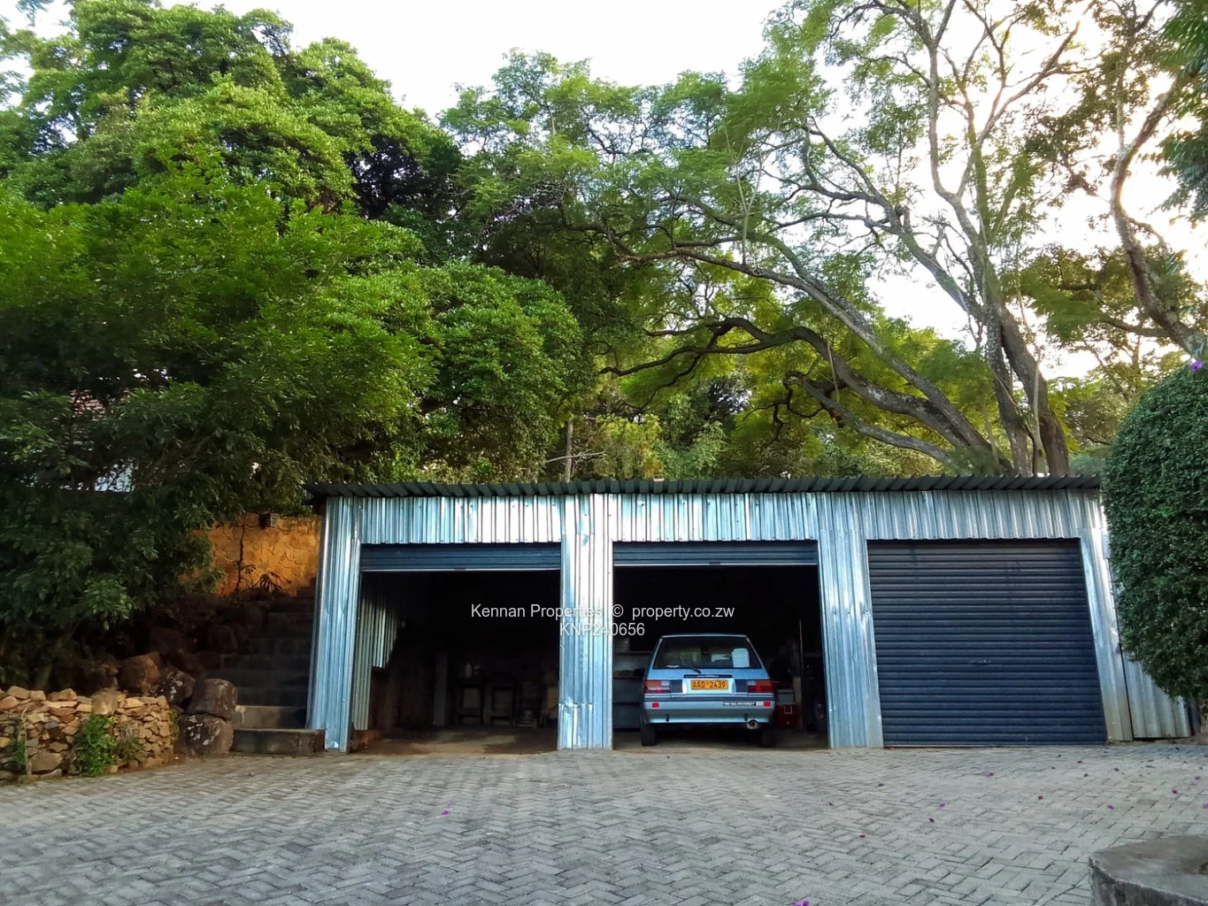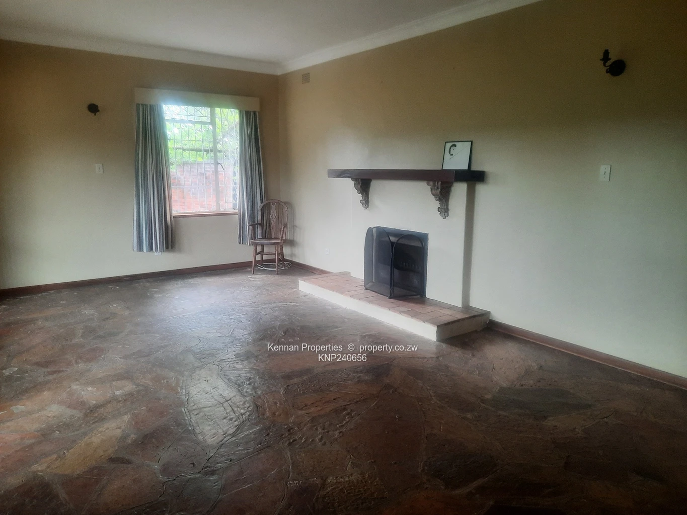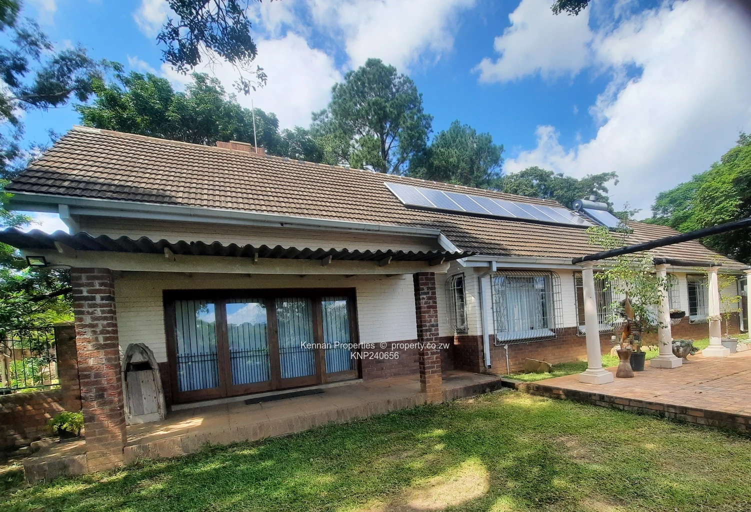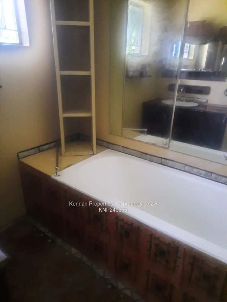 A delightful, character- filled starter home set on just under 2 acres of elevated land with lovely msasa trees. There are three bedrooms with a study, two bathrooms (mes), lounge cum dining room, with large rustic kitchen as well as a separate laundry/scullery.Adequate staff accommodation at two locations on the property, with storerooms and triple lock up garage.The borehole is very