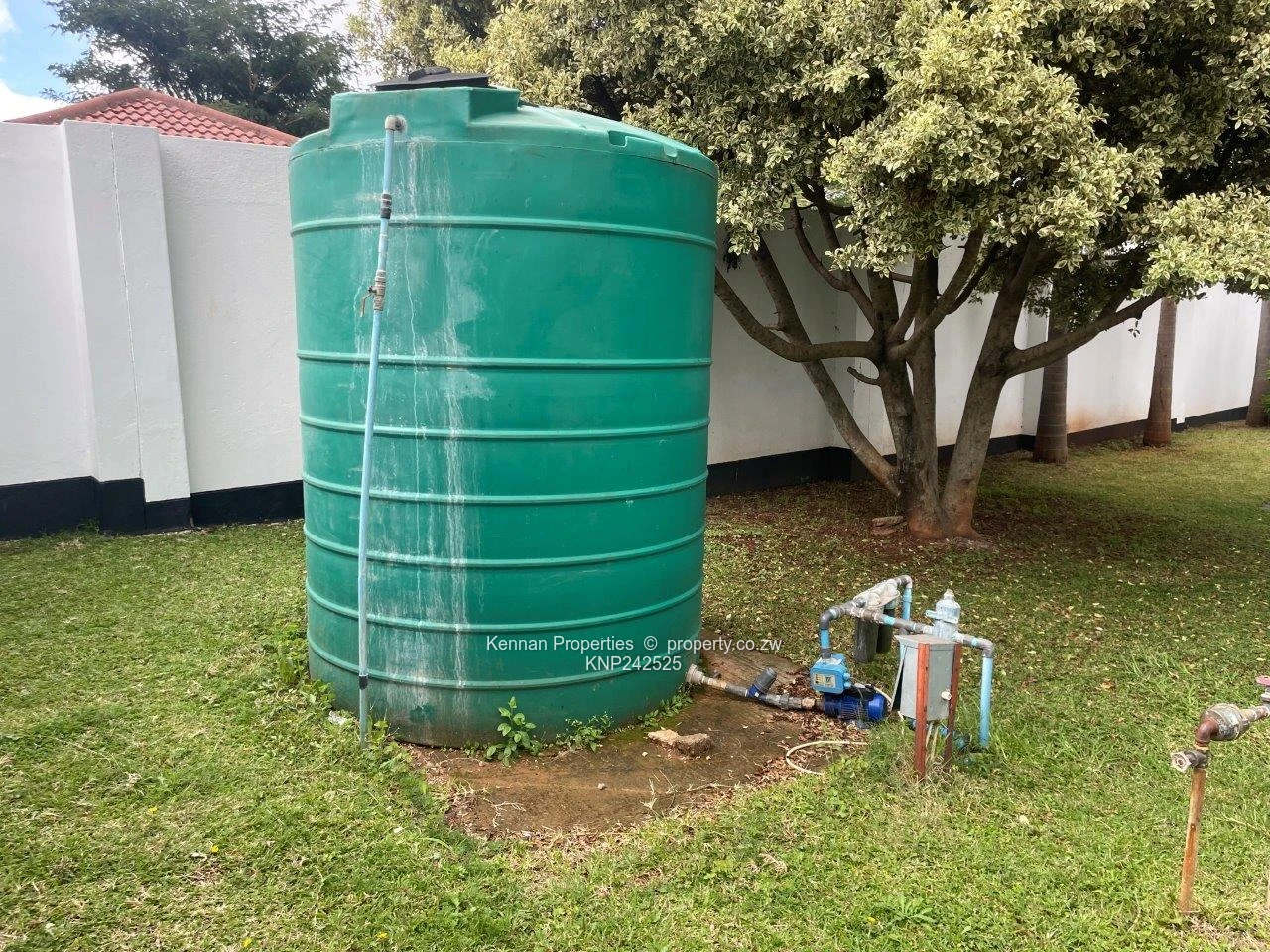 Borehole, double lock up garage, 2 roomed staff accommodation, walled, fenced and push gate.