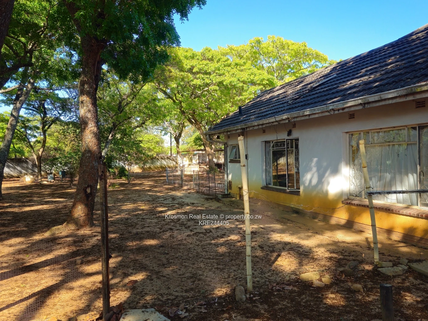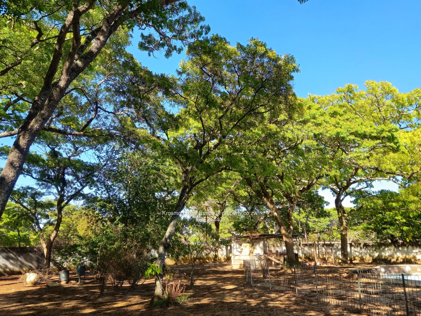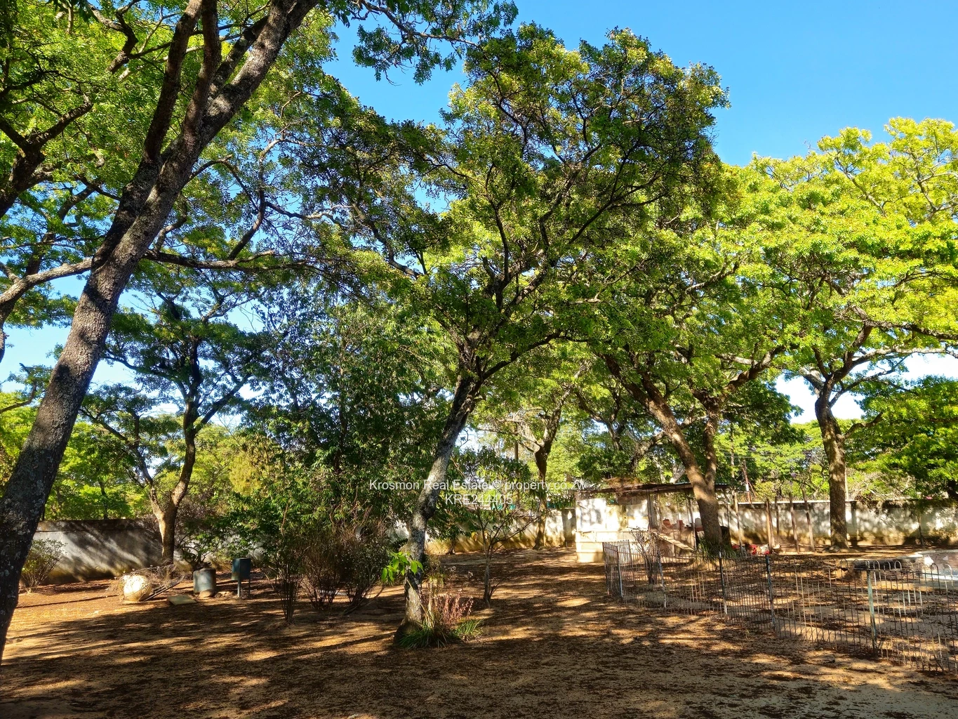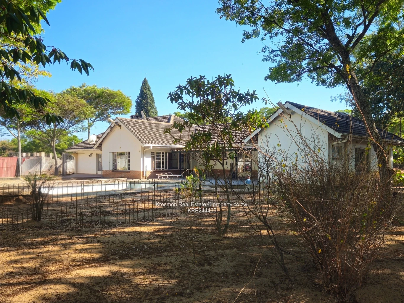 A rare Title deeded opportunity in Marondera — a substantial oldish 5-bedroom, 2-bathroom family home set on 4,250 m² with approximately 600 m² under roof. This classic single-storey property sits beneath established, shade-giving trees and offers generous outdoor space for gardening, entertaining and expansion like tennis court or basketball set up. As seen in the photos, the plot features a secure safe walled all round with a paved driveway and a detached double garage (two bay garage), plus ample parking. Large windows and sliding doors flood the interiors with light and open to a patio and pool courtyard — the swimming pool and surrounding paved entertainment area are perfect for summer gatherings. Practical extras include a reliable borehole, laundry/utility areas and separate outbuildings that provide storage or staff accommodation potential. The home’s scale and layout make it ideal for a growing family, multi-generational living or conversion to guest accommodation. With mature trees, privacy and strong development potential, this Marondera property is a solid long-term investment — bring your renovation ideas and benefit from the space and position on offer. Viewing by appointment.