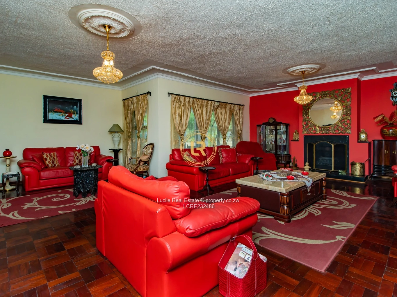 Formal lounge with fireplace and additional living spaces ideal for family gatherings and relaxation.