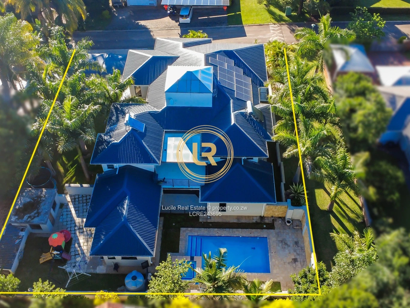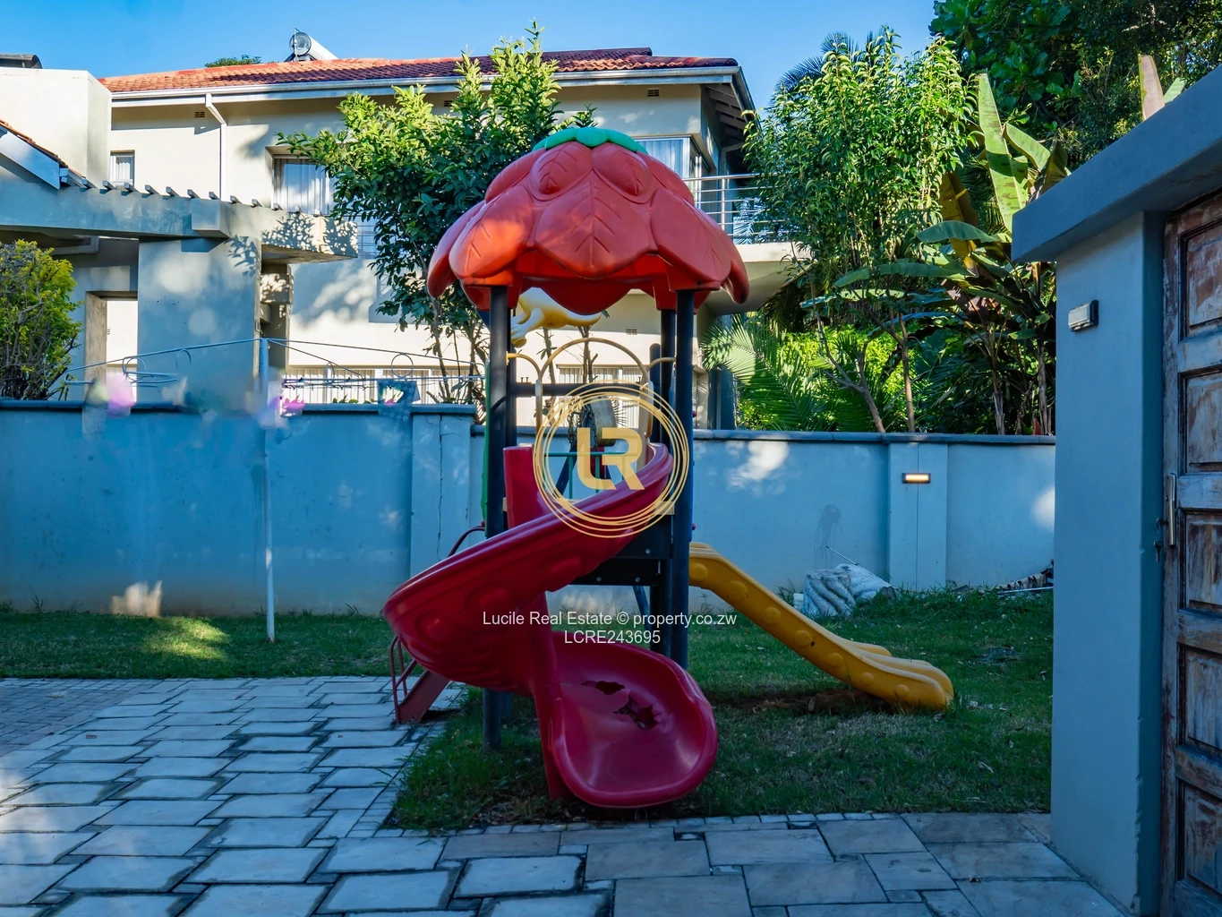 The beautifully landscaped gardens create a serene and private retreat, surrounding a sparkling swimming pool. Situated in a secure and prestigious location, the property ensures both privacy and peace of mind for its residents.