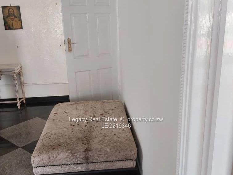 This exceptional double-storey property in Mt Pleasant offers the perfect blend of luxury just a few meters from the University of Zimbabwe. Sitting on a generous 5,500sqm stand with a clean title deed, the property is ideal for both residential and commercial purposes. It features spacious bedrooms with walk-in closets and all en-suite bathrooms, three lounges, a dining area, and a well-fitted kitchen. The home is fully tiled with finished ceilings throughout, and includes covered carports, paved surroundings, a prolific borehole with a 5,000-liter water tank, a swimming pool, and a tennis court. Outdoor entertainment is made complete with a rooftop leisure area, a bar, and a braai space. A separate 4-bedroom guest wing, each room with its own bathroom, adds extra convenience. Neat, solid, and well-maintained, this stand-alone property is walled and gated, offering both elegance and privacy.