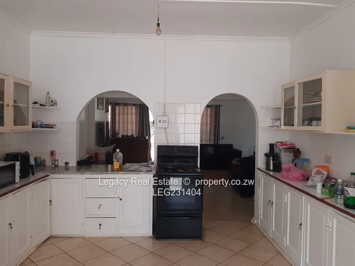 A spacious 5-bedroom double-storey house on 4,000m² in Mandara with title deeds. Features include a modern fitted kitchen with granite tops, lounge, dining room, pantry, and built-in cupboards throughout. The property also offers a 3-bedroom cottage, a 1-bedroom bachelorette unit, staff quarters, storeroom, and laundry rooms.