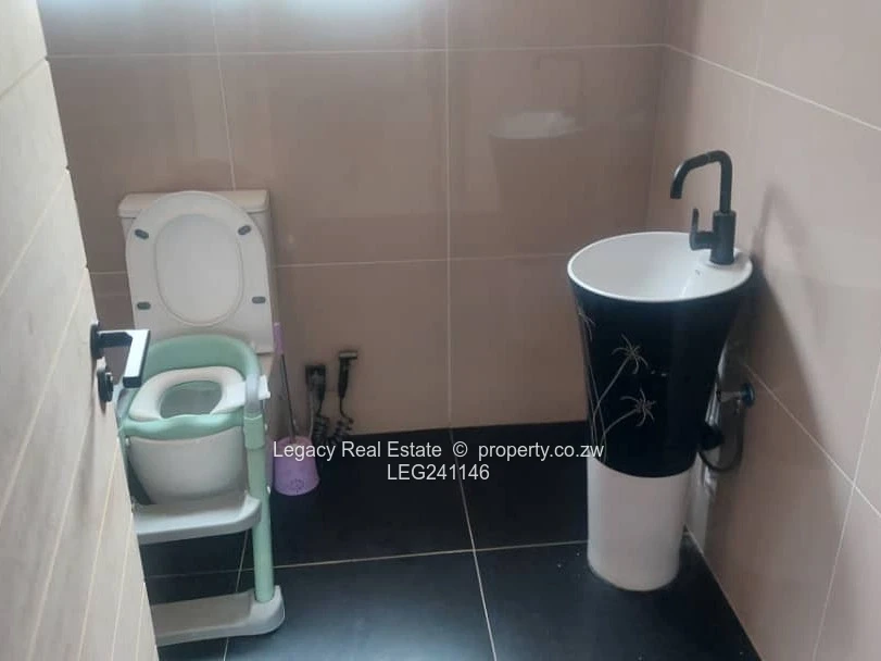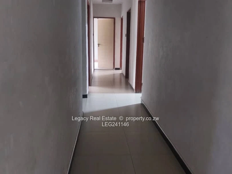 Spacious 4-bedroom family home for sale in the Paza area of Crowhill, sitting on a 1000m² stand. The property features a main ensuite bedroom, open-plan lounge, dining and modern kitchen, separate TV room, private office, double lock-up garage, and outside toilets and bathrooms. It comes with an 11kVA solar system, 5,000-litre water tank with pump, septic tank, and full title deeds