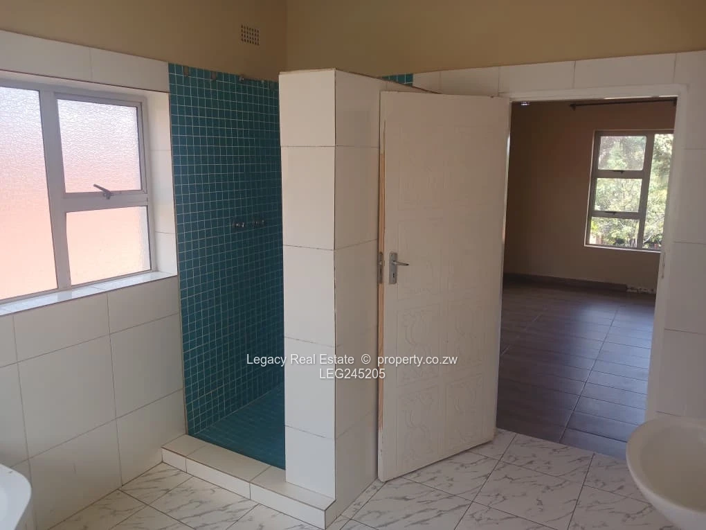 This well-positioned 5 bedroomed double storey home offers generous living space in a quiet part of Pomona, a short distance from Harare Drive. The property features two lounges, a fitted kitchen with pantry, and two bedrooms with ensuite bathrooms and built-in cupboards. The main bedroom is upstairs and includes a private balcony. Additional features include a borehole, three 5000 litre water tanks, and a large split-level yard providing ample space for parking and outdoor use.
