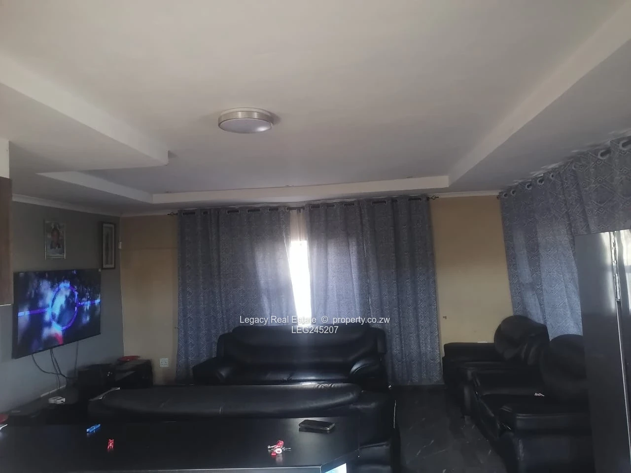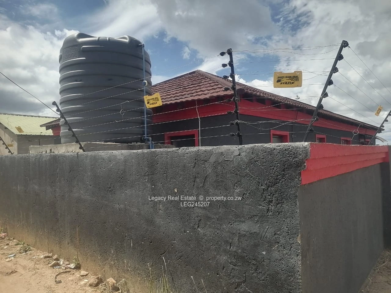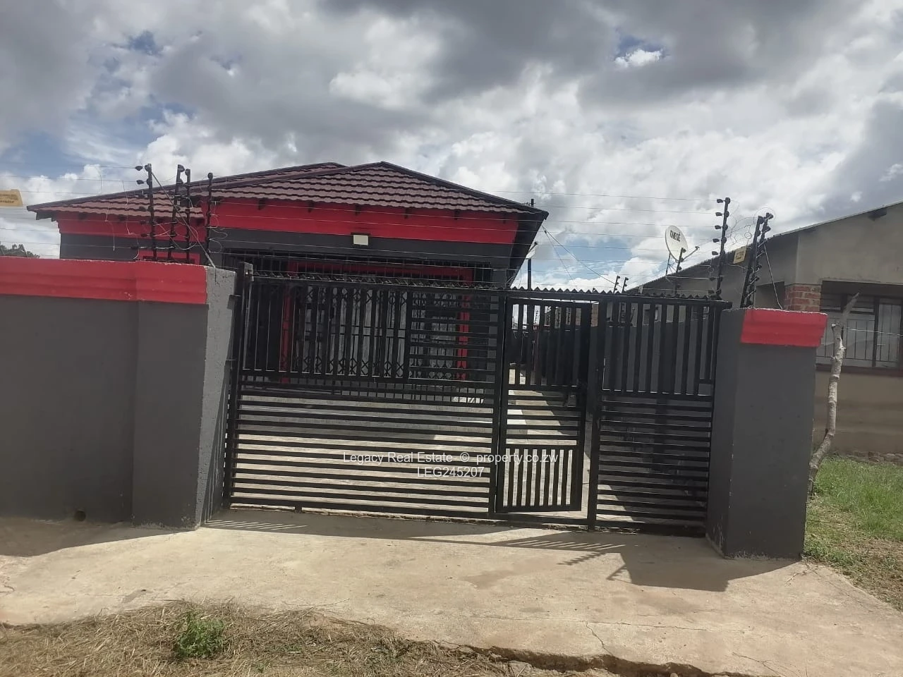 This neat 3 bedroomed home in Chiedza City offers practical and comfortable living with all bedrooms fitted with built-in cupboards and a spacious main bedroom featuring a large ensuite with both bath and shower. The house includes a fitted kitchen with cupboards and stove, a dining area, and is fully tiled with ceilings throughout. Additional features include a second toilet in the passage, a 5kVA solar system, JoJo tank with water pump, security alarm system, and a durawall with electric fence, making it a secure and move-in ready option suitable for family living or investment.