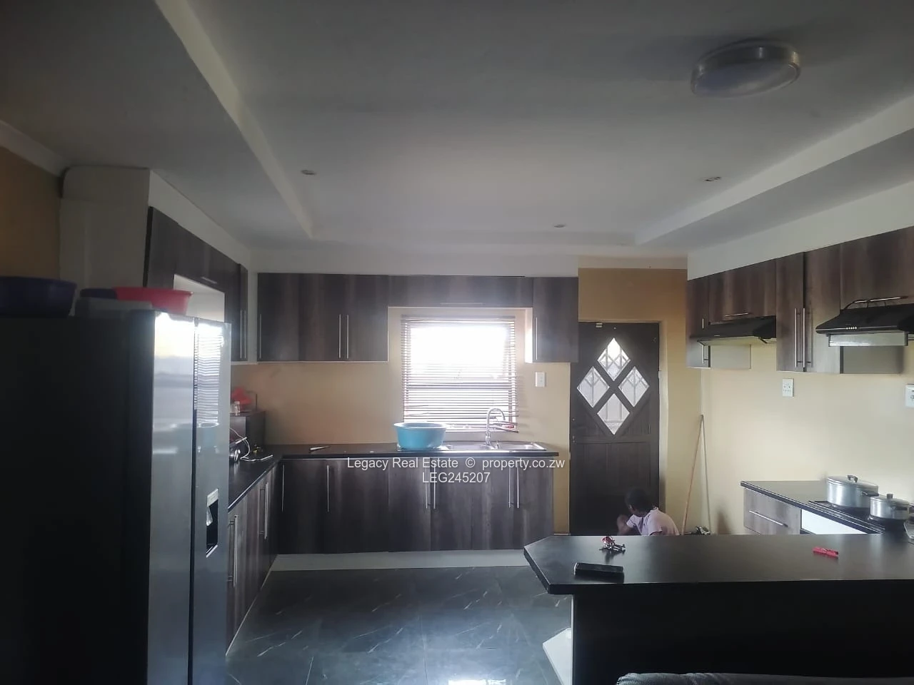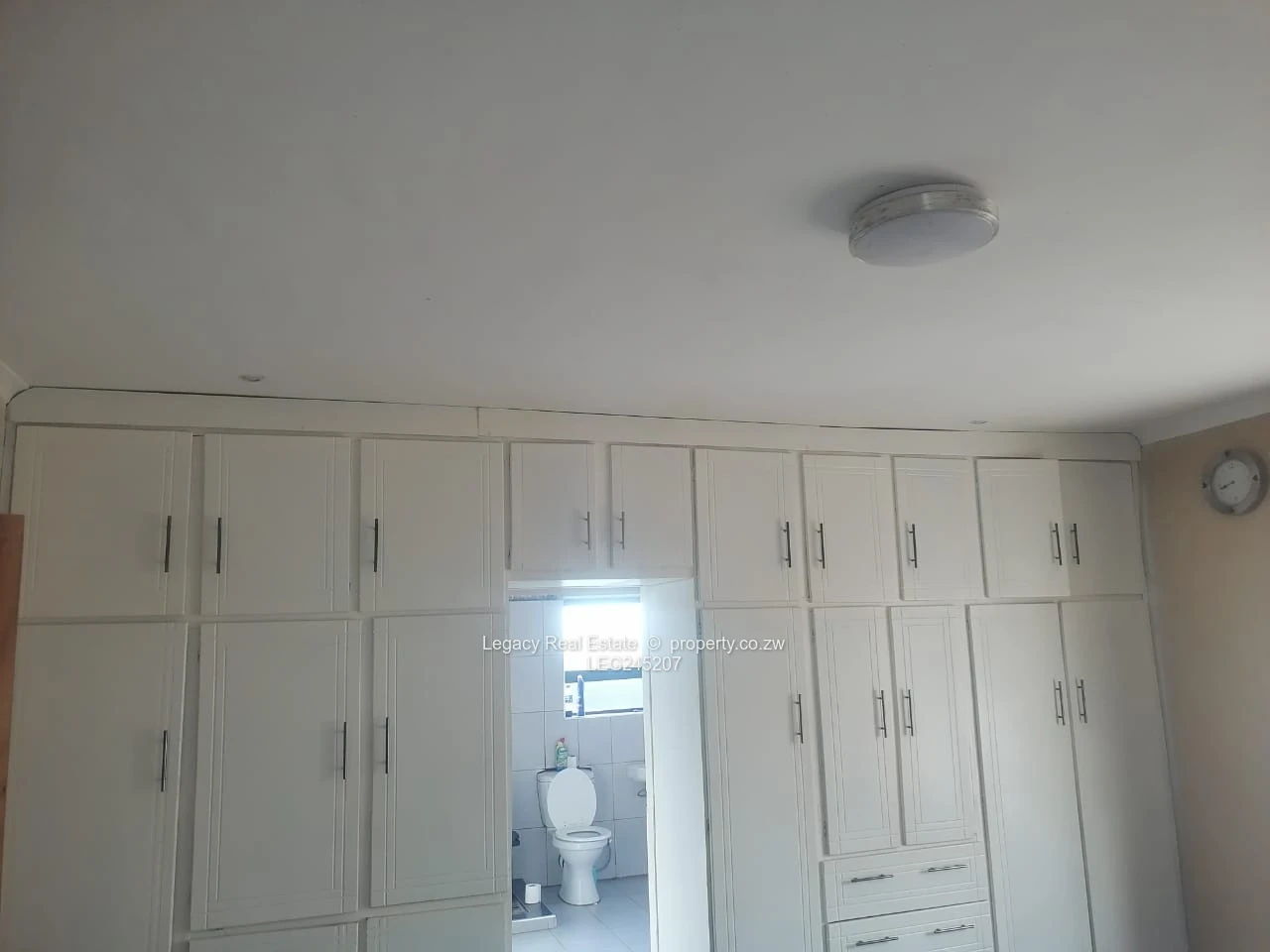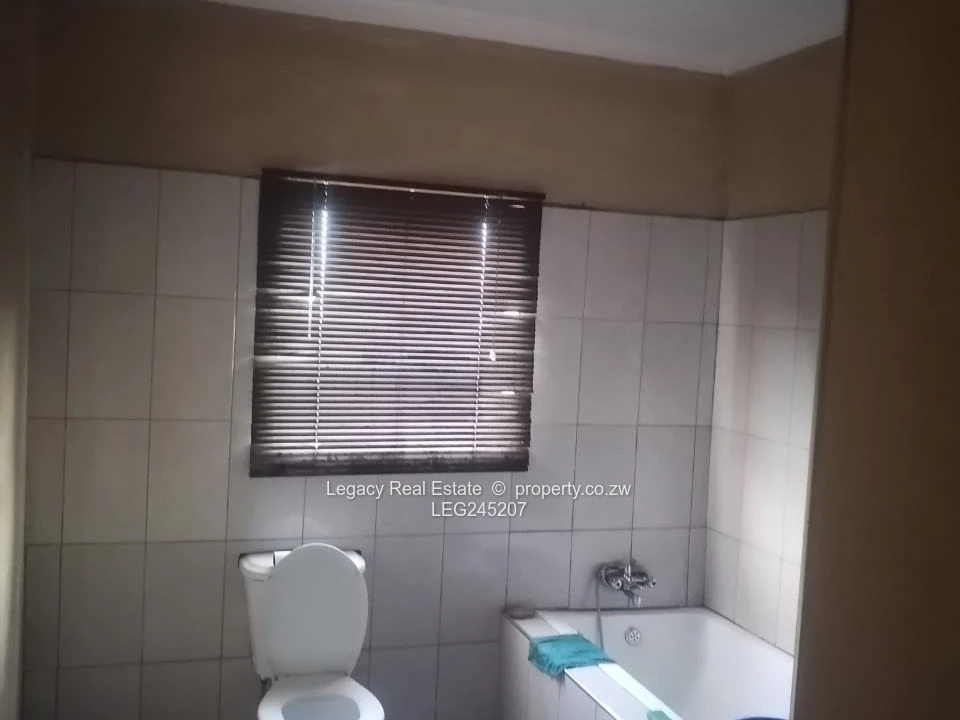 This neat 3 bedroomed home in Chiedza City offers practical and comfortable living with all bedrooms fitted with built-in cupboards and a spacious main bedroom featuring a large ensuite with both bath and shower. The house includes a fitted kitchen with cupboards and stove, a dining area, and is fully tiled with ceilings throughout. Additional features include a second toilet in the passage, a 5kVA solar system, JoJo tank with water pump, security alarm system, and a durawall with electric fence, making it a secure and move-in ready option suitable for family living or investment.