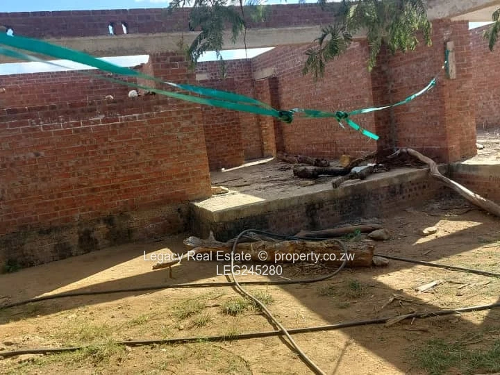 This incomplete 5 bedroomed house in Crowhill is at roof level and offers a solid structure ideal for finishing to your own taste. The design includes two wings, two lounges, two dining areas, a kitchen, and separate toilets, providing generous space for a large family or potential rental setup. The property sits on a 1200sqm stand and comes with a borehole, making it a practical investment with essential water already in place.