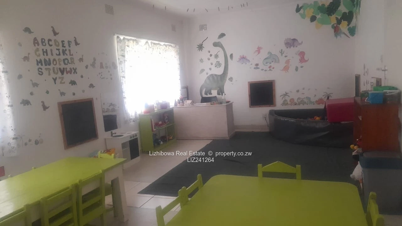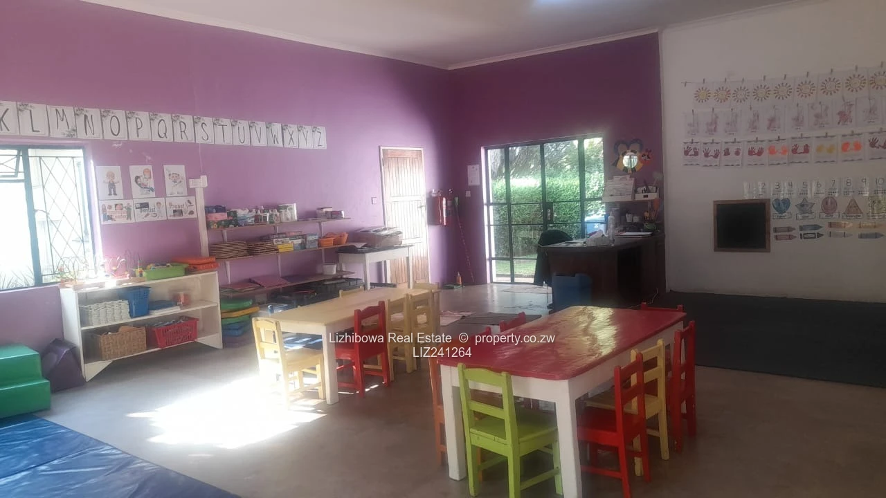 Originally a house with 3 bedrooms (mes), lounge, dining room, kitchen, common bathroom, 2 separate toilets, 1 large classroom, staff quarters with 1 bedroom, lounge and kitchen and bathroom. Prolific borehole, 5000L water tank, swimming pool.