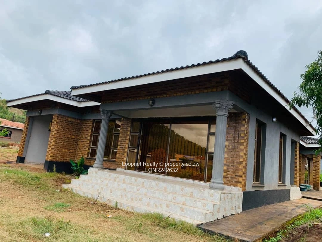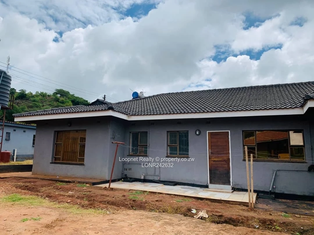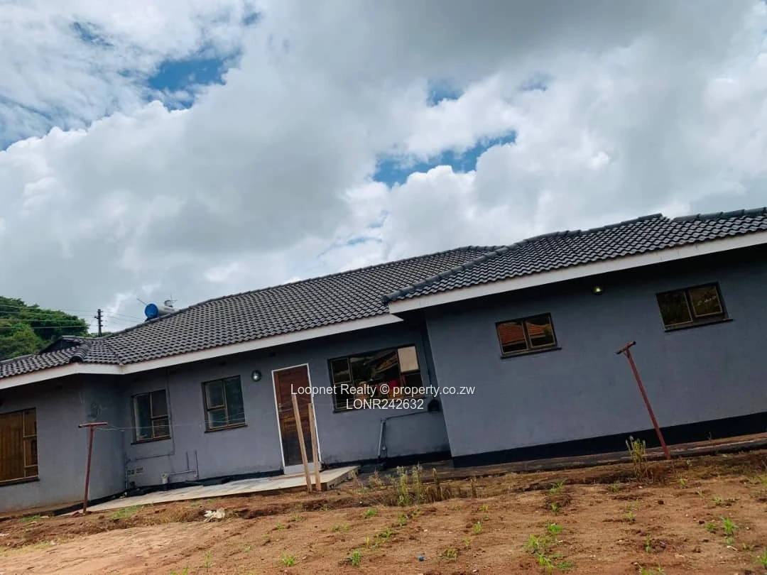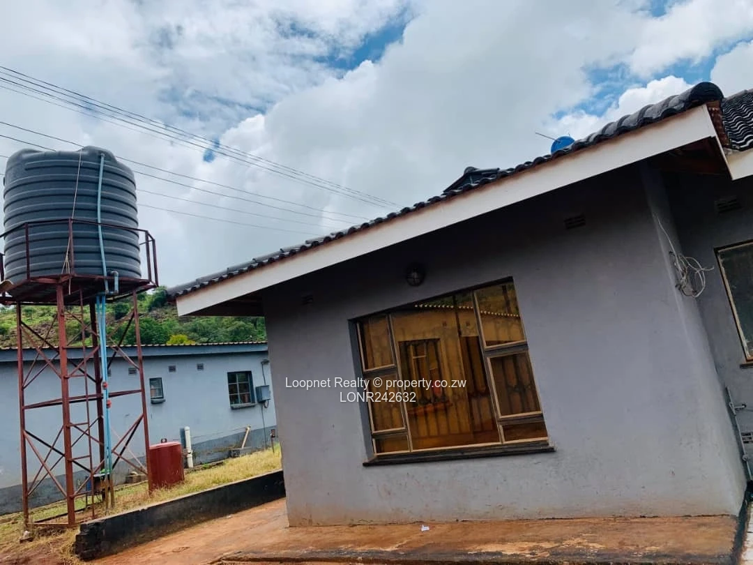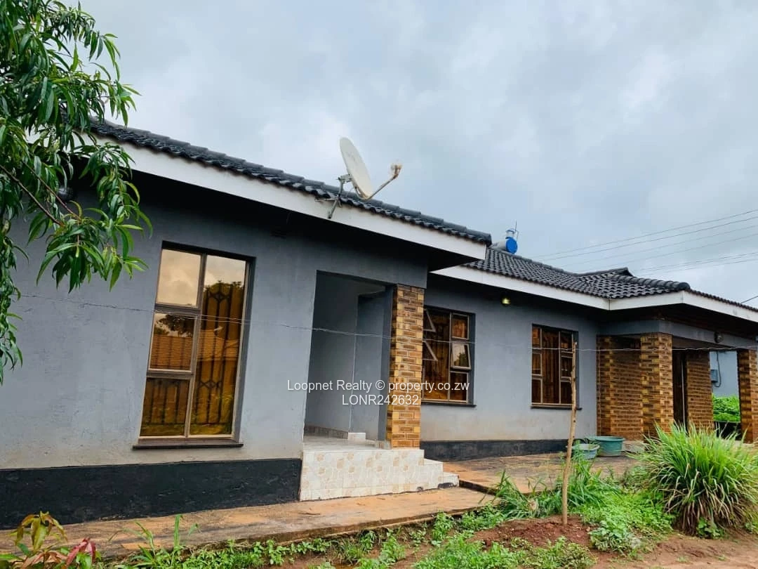 Beautifully presented three-bedroom family home for sale in Concession, Mashonaland Central — a solid single-storey residence on a 450 m² stand with 200 m² of comfortable living space. As seen in the photos, the property features a modern grey exterior with tasteful brick accents, a tiled roof and wide picture windows that flood the interior with natural light. A welcoming covered entrance with decorative columns leads into the living areas; large windows and wide doorways create an airy, open feel. Practical additions include a borehole with elevated water tank on a steel stand (pictured) for reliable water supply, a satellite dish, concrete perimeter walkways and ample yard space for gardening, parking or future expansion. With one bathroom, three well-proportioned bedrooms and solid building fabric, this home is ideal for a growing family or an investor seeking a low-maintenance, move-in-ready property in a convenient Concession neighbourhood. Contact us to arrange a viewing and see the potential firsthand.