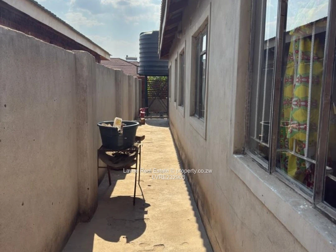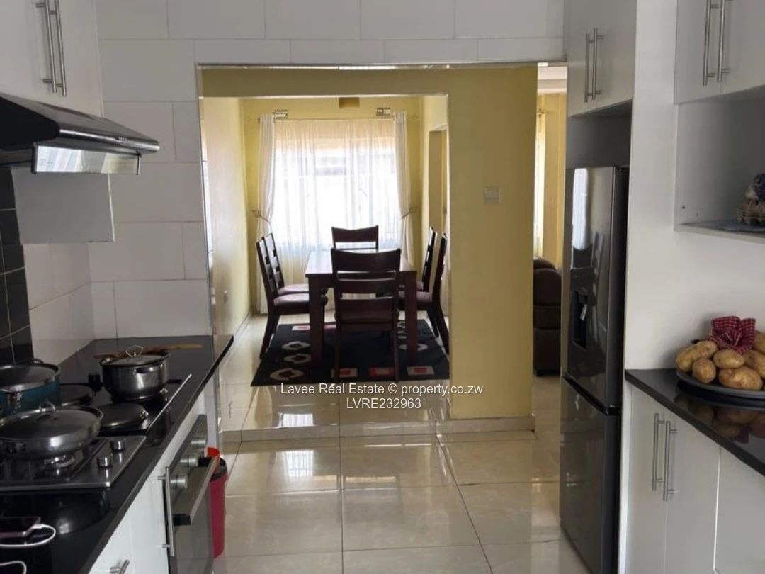 Charming, move-in ready 4-bedroom, 2-bathroom family home in Fidelity, Harare South — 150 m² of comfortable living on a 240 m² stand. The single-storey layout offers a bright open-plan lounge and dining area with good natural light and easy flow to a fitted kitchen complete with gas hob, extractor and countertop space. Bedrooms are well-proportioned, two with built-in wardrobes and one shown set up as a master bedroom; bathrooms are fully tiled and practical.