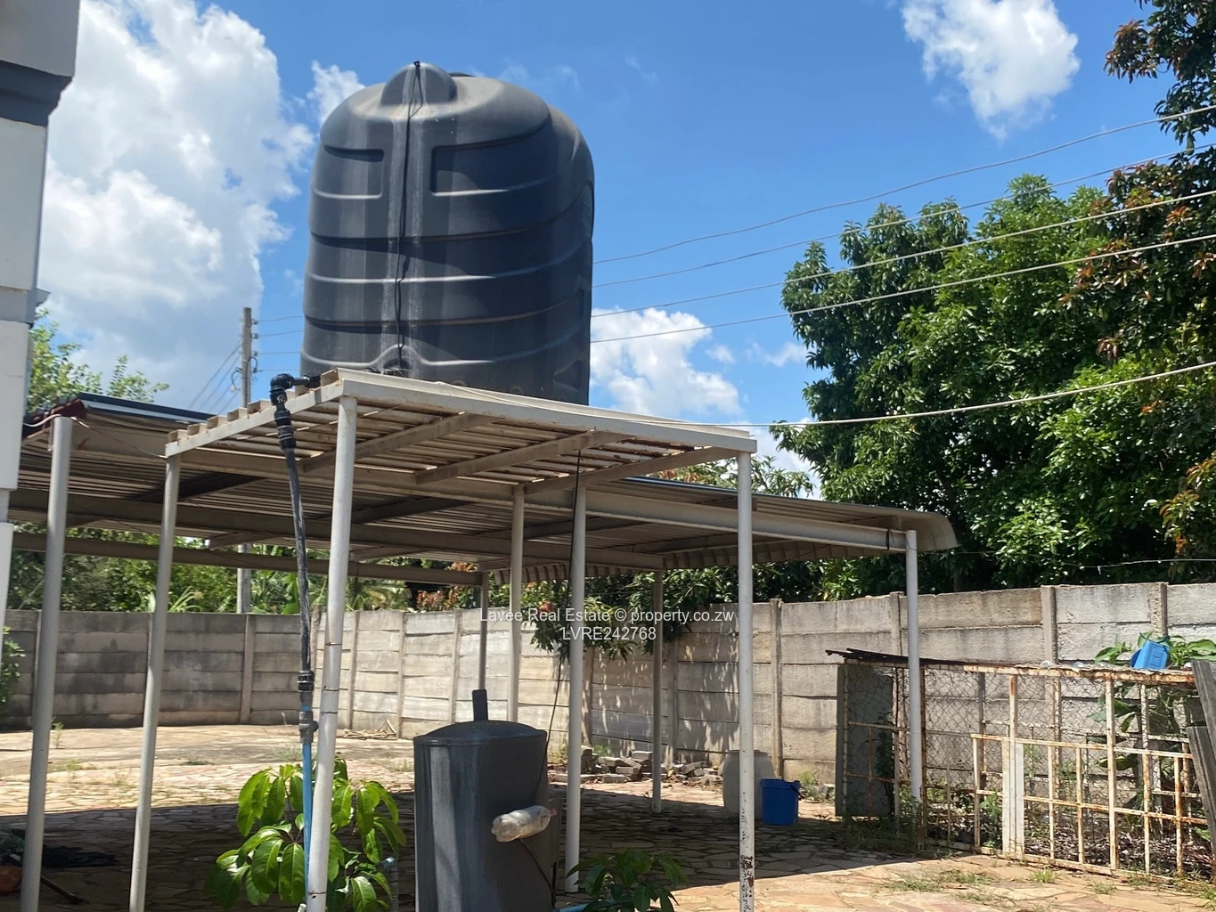 Charming Mount Pleasant Heights family home on a generous 2,100 m² stand — a rare find in Harare North. This single-storey, 100 m² house offers 2 bedrooms and 1 bathroom and sits behind solid concrete boundary walls for privacy. As seen in the photos, the property features a wide red-brick driveway leading to the front entrance, neat, landscaped lawns with shrubs and a decorative fountain, and a covered metal carport beside a large black water tank. A fitted borehole and water storage ensure reliable supply and visible pump infrastructure in the yard. The façade is freshly painted neutral grey with security bars on windows and a welcoming front stoep — ideal for light refurbishment or immediate occupation. Spacious grounds provide room for garden expansion, additional garages or a granny flat. A quiet, leafy street outlook and clear blue skies complete the picture — an excellent opportunity for first-time buyers or investors seeking Mount Pleasant Heights convenience and potential. Contact to arrange a viewing