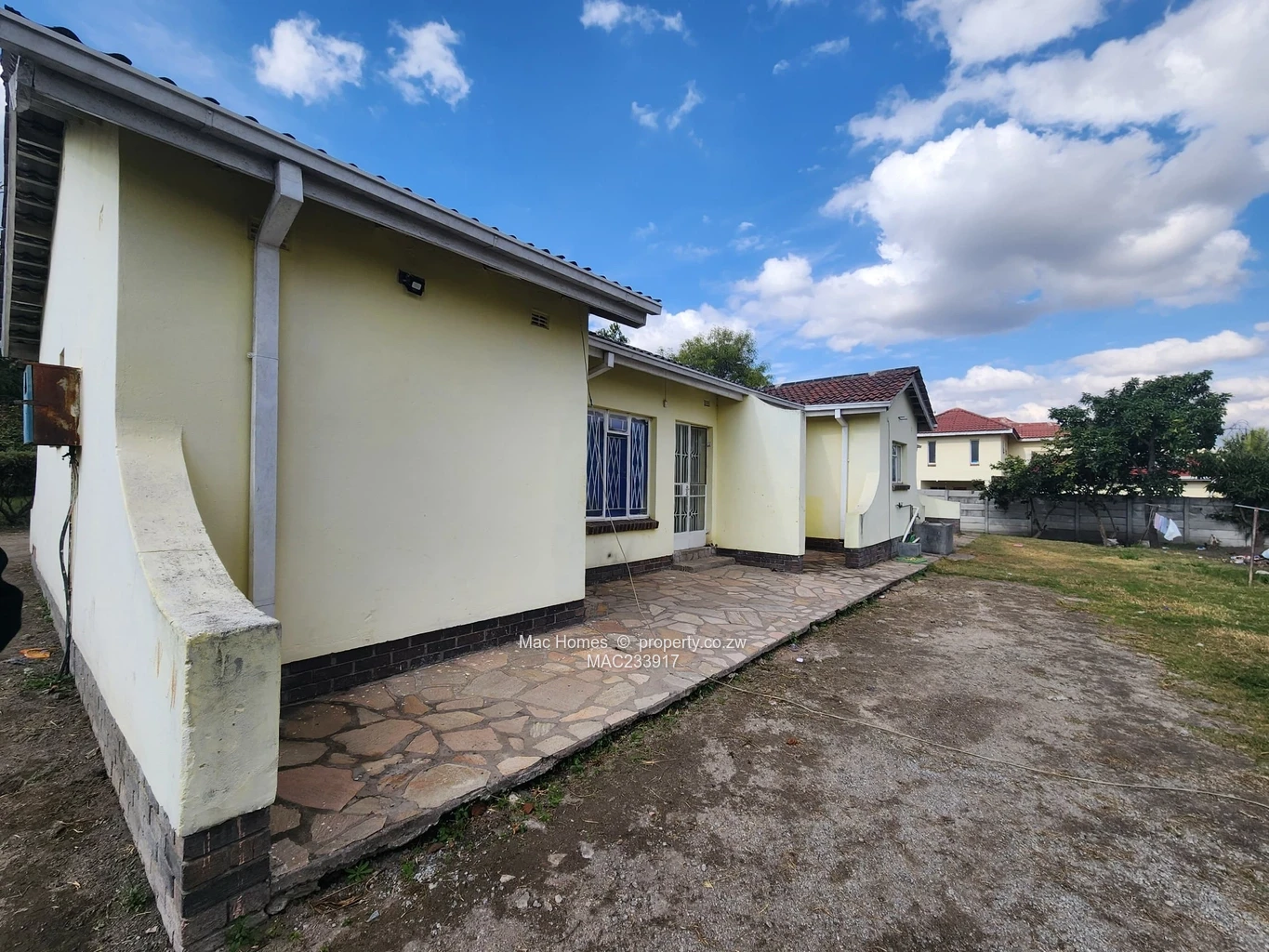 Welcome to this charming single-story house in Greendale, Harare, offering a perfect blend of comfort and functionality. Set on a generous 4000sqm plot, the exterior features a warm light yellow finish complemented by a durable tiled roof, creating an inviting atmosphere. The well-manicured grassy area and surrounding greenery enhance the overall privacy and serenity of the property.