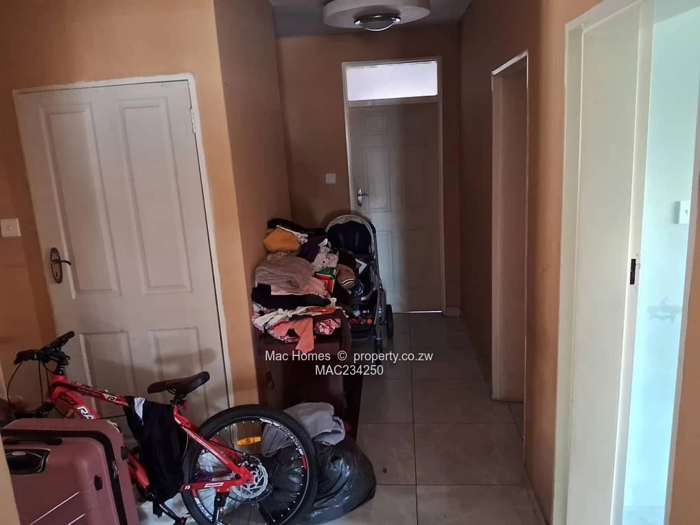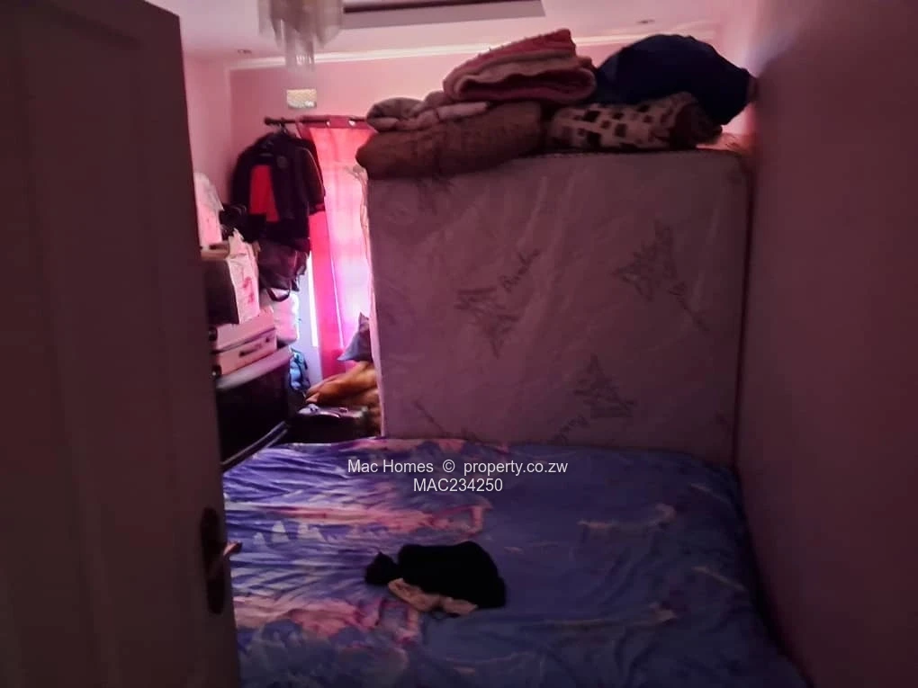 Modern 4-bedroom family home for sale in Mabvazuva, Ruwa — 400 m² stand with a comfortable 250 m² under roof. As seen in the photos: a fully walled property with a secure sliding gate and paved driveway offering convenient parking. The house has a tiled roof with a solar water/heating system visible on the roof and street solar lighting for added security. Inside you’ll find quality tiled floors throughout, stylish ceiling details and a bright open-plan lounge that flows from a fitted kitchen with granite counters, built-in cupboards and breakfast bar — perfect for everyday family living and entertaining. The main bedroom features an en suite with fully tiled shower area; bedrooms include built-in wardrobes and tasteful finishes. There is a covered verandah for outdoor seating and the yard includes a small planter at the gate. Good ZESA supply and a solid perimeter wall with burglar bars on windows provide peace of mind. The property shows lived-in items in the pictures but presents excellent value and is ready for quick occupation or light finishing touches to personalise. Ideal for families seeking convenience, security and modern finishes in Mashonaland East. Contact for a viewing.