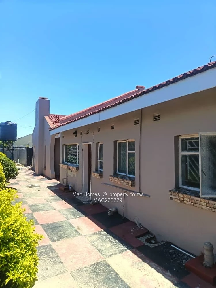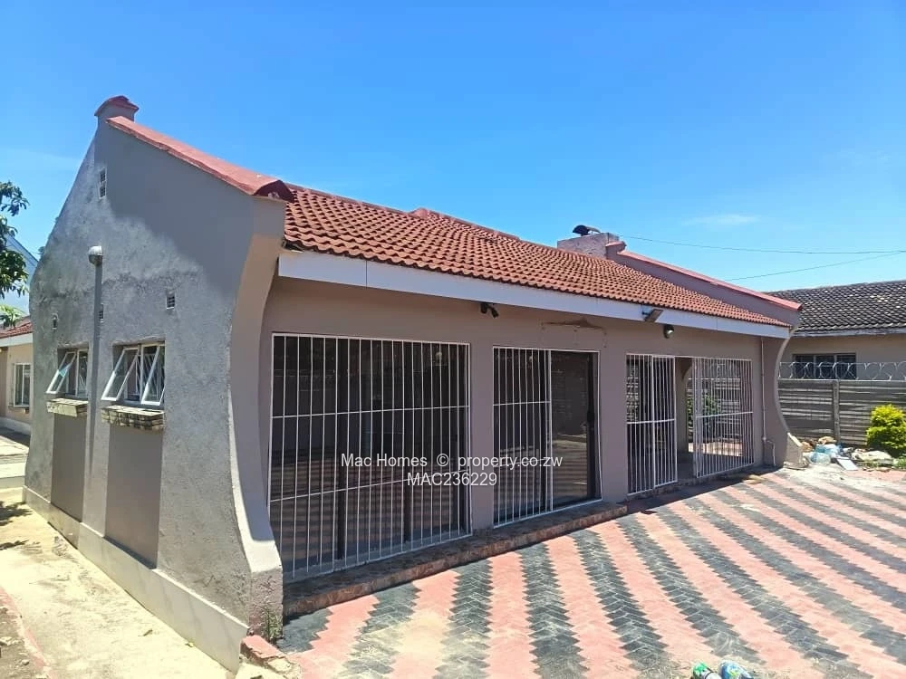 Practical services include municipal water plus a large elevated water tank on the property (water tank visible in the back yard photo), good ZESA supply, and sturdy burglar bars on windows for added security. Well-paved walkways and tasteful exterior paint indicate recent upkeep (side and rear photos). Perfect as a comfortable family home or a rental-income opportunity — ready to move in. Contact us to arrange a viewing.