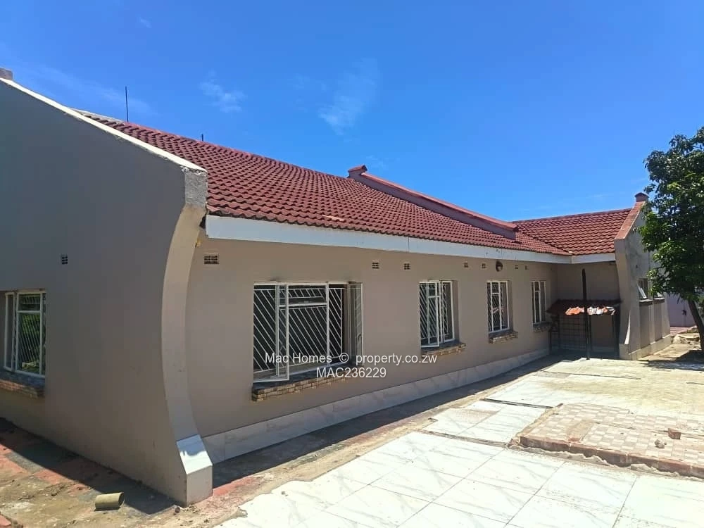 Modern family home in New Marlborough, Harare West — 4 beds, 2 baths on a 600 m² stand with 250 m² built area. This single-storey property is fully walled with a secure sliding gate and razor wire (see exterior photo) and offers ample paved parking for several vehicles. The tiled roof and neat front lawn create great curb appeal, while the yard is paved and low-maintenance.