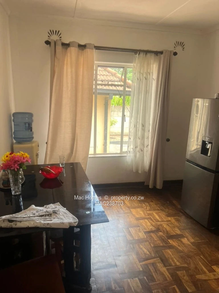 Charming three-bedroom family home in Hillside, Harare South — sit on a generous 1,414 m² stand with a comfortable 150 m² footprint. The photos show a sunny, flat backyard framed by mature palms and a high boundary wall, perfect for children, pets, a pool or future extension (see image of the lush lawn and picnic bench). Inside you’ll find character features: original parquet floors through the living areas, an inviting brick-arch fireplace in the lounge and an arched doorway that creates warm, connected living spaces. The kitchen is compact and functional with tiled flooring and space for modern upgrades (photo shows existing cupboards, stove and fridge). The tiled bathroom retains vintage charm with a built-in bathtub and matching green-and-white tiles; there is one bathroom and a separate toilet (see bathroom images). Light floods the rooms through good-sized windows dressed with curtains, and a dining area opens onto garden views (dining/kitchen photo shows the layout and handy water dispenser). This property is ideal for a growing family or an investor looking to add value through cosmetic updating and landscaping. Located in sought-after Hillside, you’re minutes from schools, shops and transport. For viewing and price details contact us today — a relaxed family lifestyle and great redevelopment potential await.