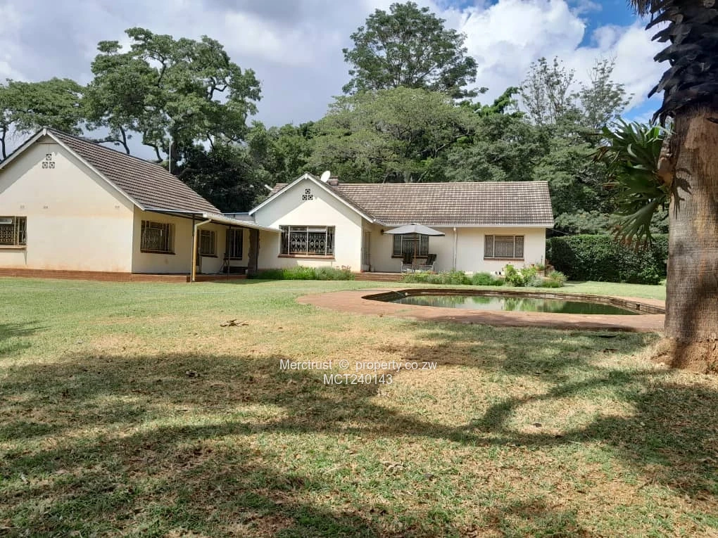 5 bedrooms, study, lounge & separate dining room, fitted kitchen, patio overlooking glitterstone pool, good borehole with elevated 5000 litre tank, large lock-up garage/workshop, staff quarters & storeroom, triple carport, all on over 1 acre, walled with sliding gate