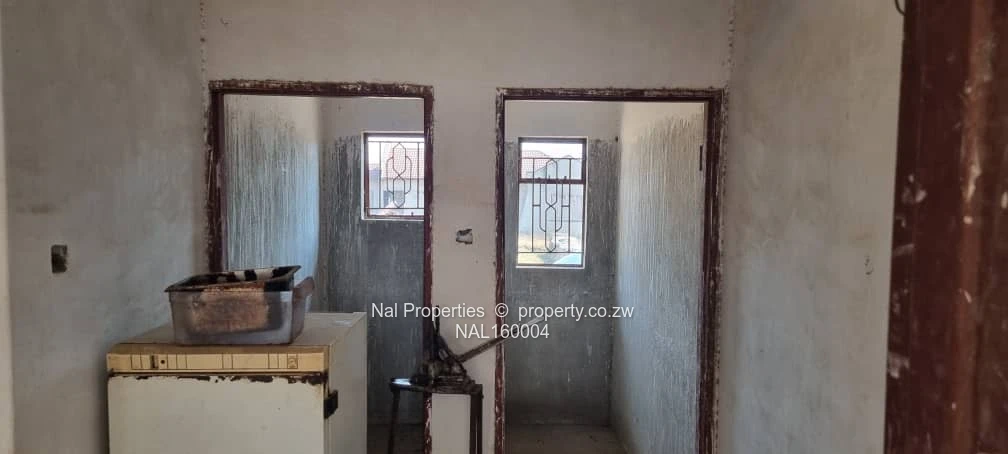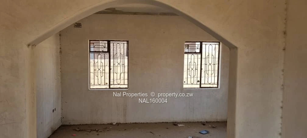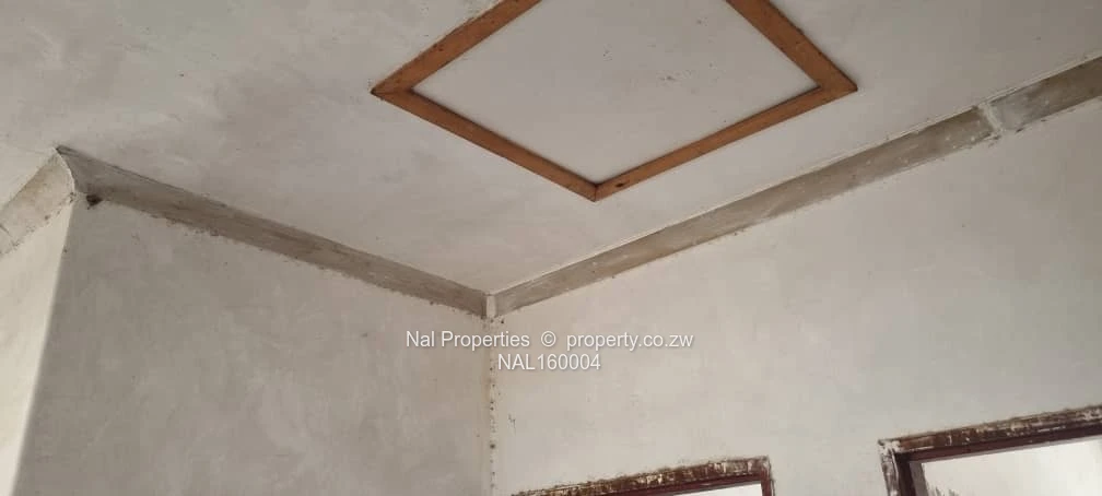 90% complete 4 beds, mes, dining and kitchen with ceiling, electric tubing done (no wiring), burglar bars and screen doors, rough floors, IQ roof, cession