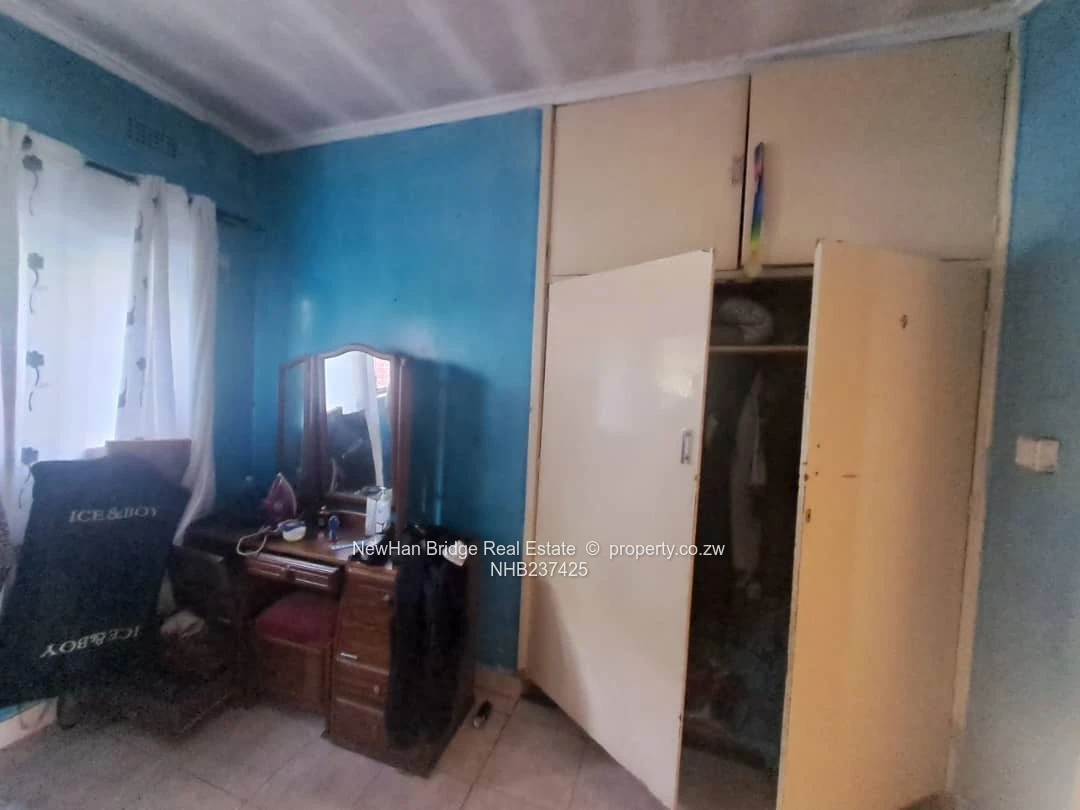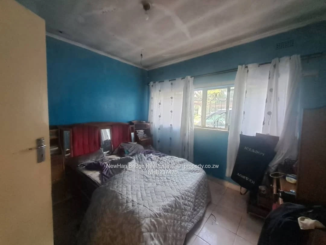 Charming single-storey family home for sale in Waterfalls, Harare South — set on a generous 3,000 m² stand with a substantial 700 m² building footprint. This neat 3-bedroom, 1-bathroom bungalow features a welcoming covered veranda supported by brick pillars (see photos), a mature shade tree with a raised planter in the front garden and well-kept lawns with room to landscape or develop further. The property includes a reliable borehole and visible water tank on a stand, plus a solar water heater on the roof — excellent for secure, off-grid water and hot water supply.