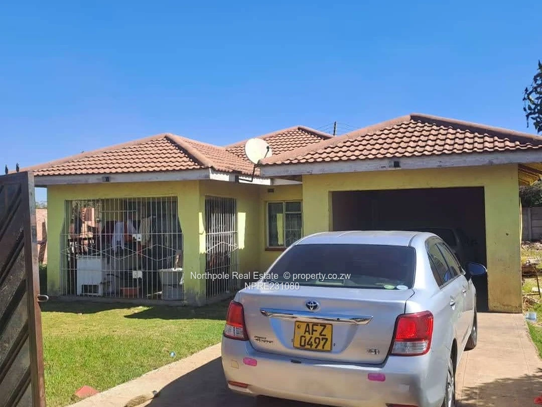 Family home in Tynwald, Harare West — solid 4-bedroom, 1-bathroom house on a generous 416 m² stand. As seen in the photos, the property sits behind a secure perimeter wall with a private driveway leading to a lock-up garage and covered verandah ideal for outdoor seating. The exterior features a neat lawn and tiled roof. The main bedroom is en-suite, and the home benefits from municipal water, a functioning sewer system and reliable ZESA supply. Viewing by appointment — a great opportunity in a convenient Harare West neighborhood.