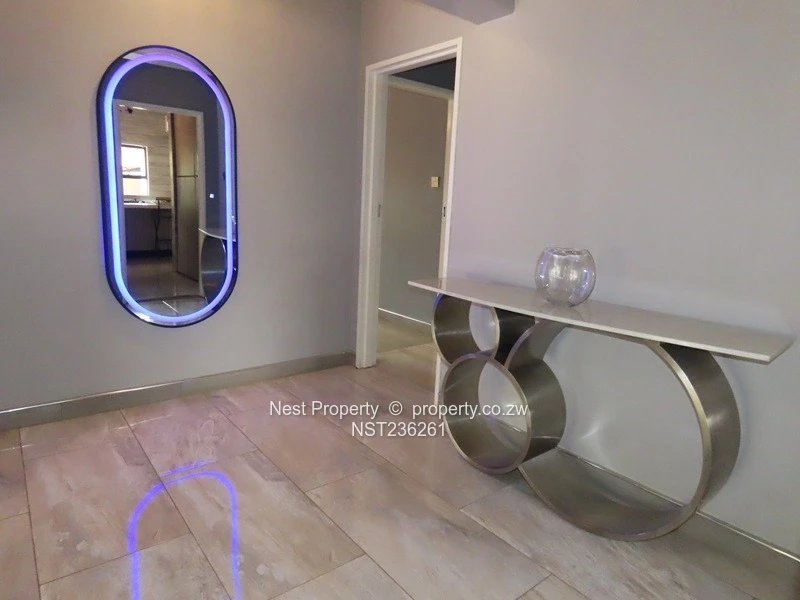 A separate building houses the mini Gym, steam room and Sauna. Double Carport. 2 x 5000litre Tanks- domestic & main house. 2 room Staff Quarters. The Borehole is at 140 metres and currently in October filling the Tanks over 2 days- this will improve in the rainy season. There is a next door sub-division - approval for boundary wall plans is in process- the wall will be paid for and erected by the Seller. Electric Gate. 18 Solar Panels, large Invertor, Solar Geyser. Please contact Tracey or Fern for a viewing.