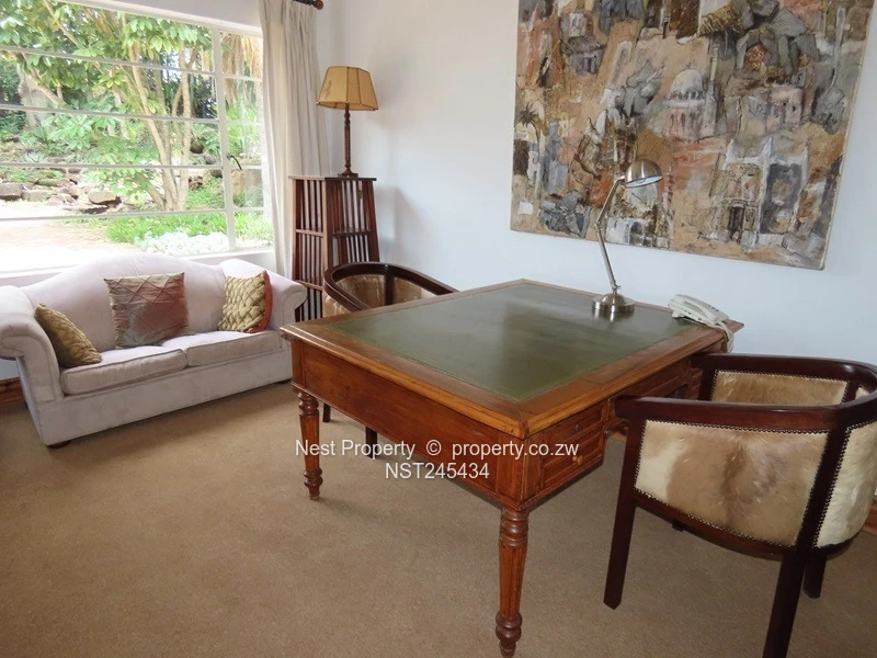 The property has a 45KVA Generator, 7.5 KVA Invertor, 14 Solar panels and 3 x 5000l Tanks. Whilst there is seasonal borehole on the property the Garden has been cleverly landscaped with water-wise plants and a beautifully crafted waterfall feature and pond. The sparkling blue pool adds to the flavour of the property and two large parking areas ensure ample space for Visitors. The discerning Tenant will appreciate the class, tranquility and ambience of this property with the central location ensuring quick access to the Enterprise corridor and to various shops and schools in the area. This property is being offered as fully furnished with use of the Invertor batteries. In a Company Name. Viewing by appointment only.