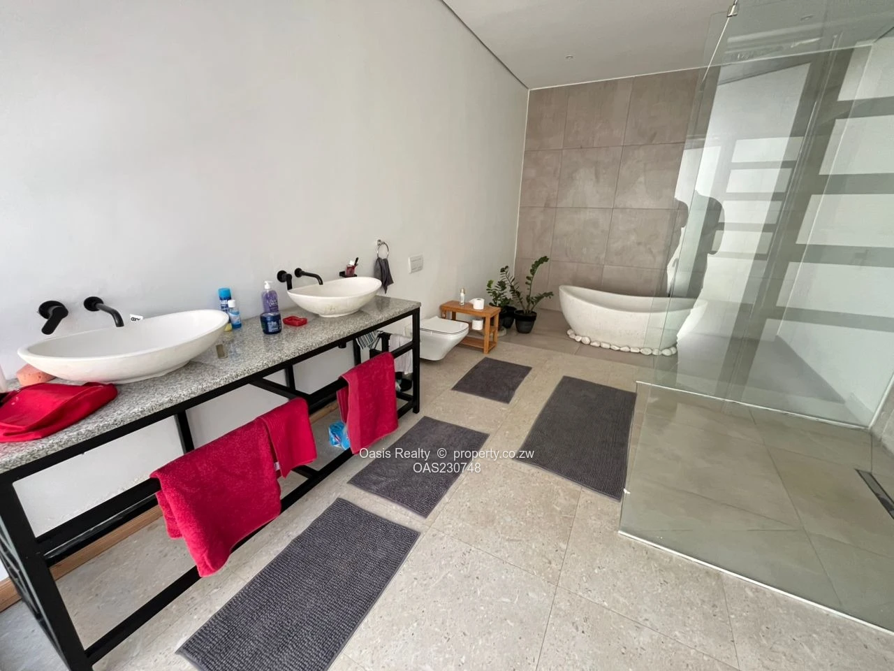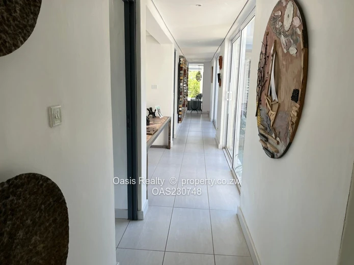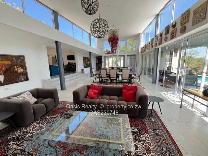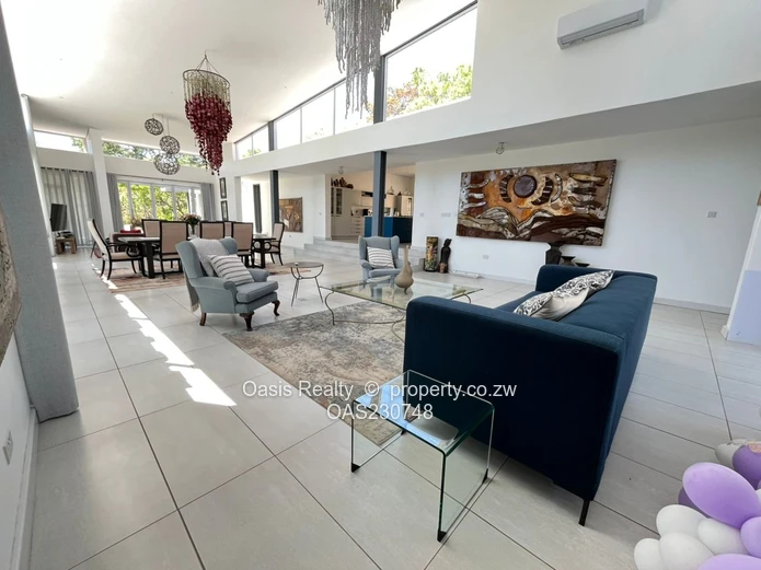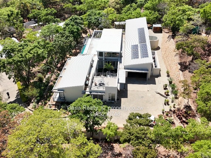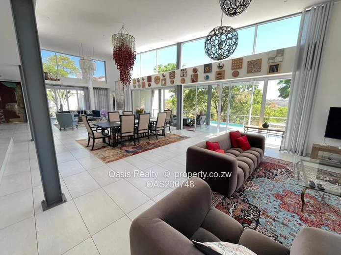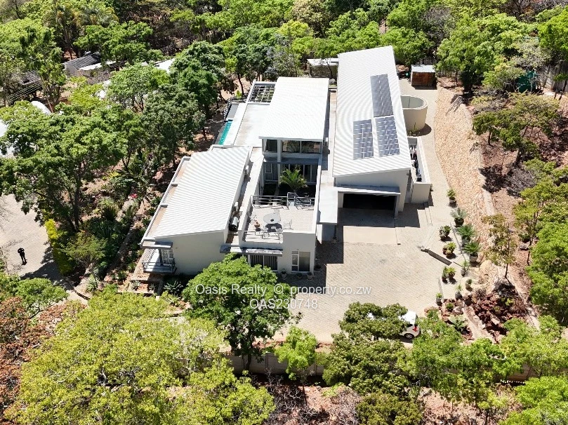 Oasis Realty proudly presents this architectural marvel perched on a landscaped hill in the prestigious suburb of Glen Lorne. With breathtaking views, curated artistry, and exceptional modern amenities, this residence is a rare opportunity to own one of Harare’s most distinctive homes.