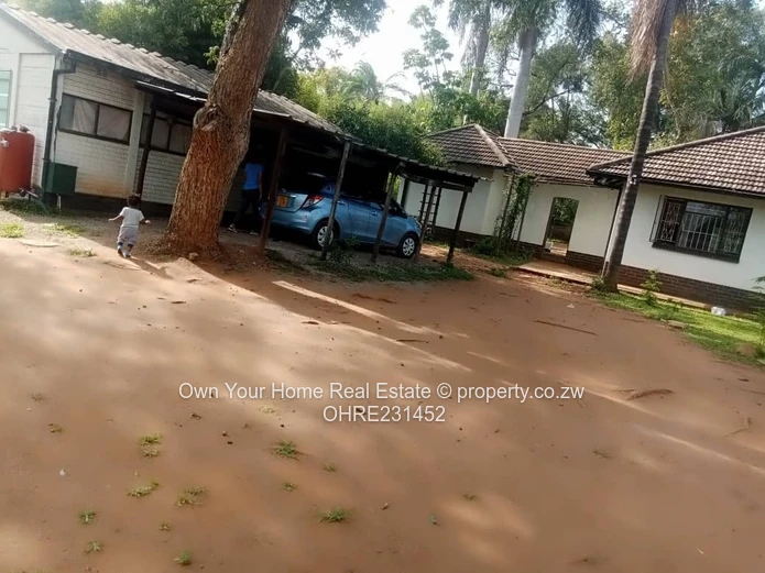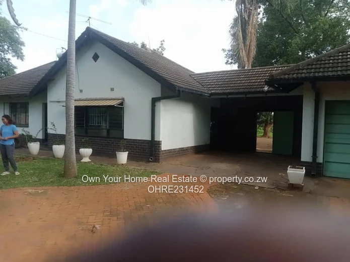 Emerald Hill. Solid oldie comprising of three bedrooms, main ensuite, big combined lounge and dining, kitchen. Borehole available. Walled and gated, single lockup garage and 2 outside separate and spacious buildings. Suitable for clusters since adjacent properties have cluster developments. Its along Hilary Road Close to second street extension.Stand size 4200 square meters. Title deeds available. Asking for $480k