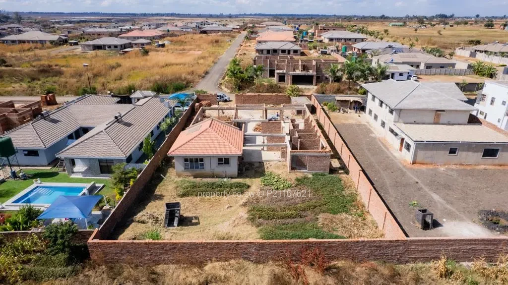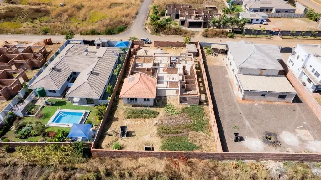 Incomplete house with ultra modern design for a discerning buyer. It boasts of 4 beds, 2 ensuites, 3 lounges, a covered patio; double lock-up garage; part of the house is already roofed & habitable. All this on 1000sqm.