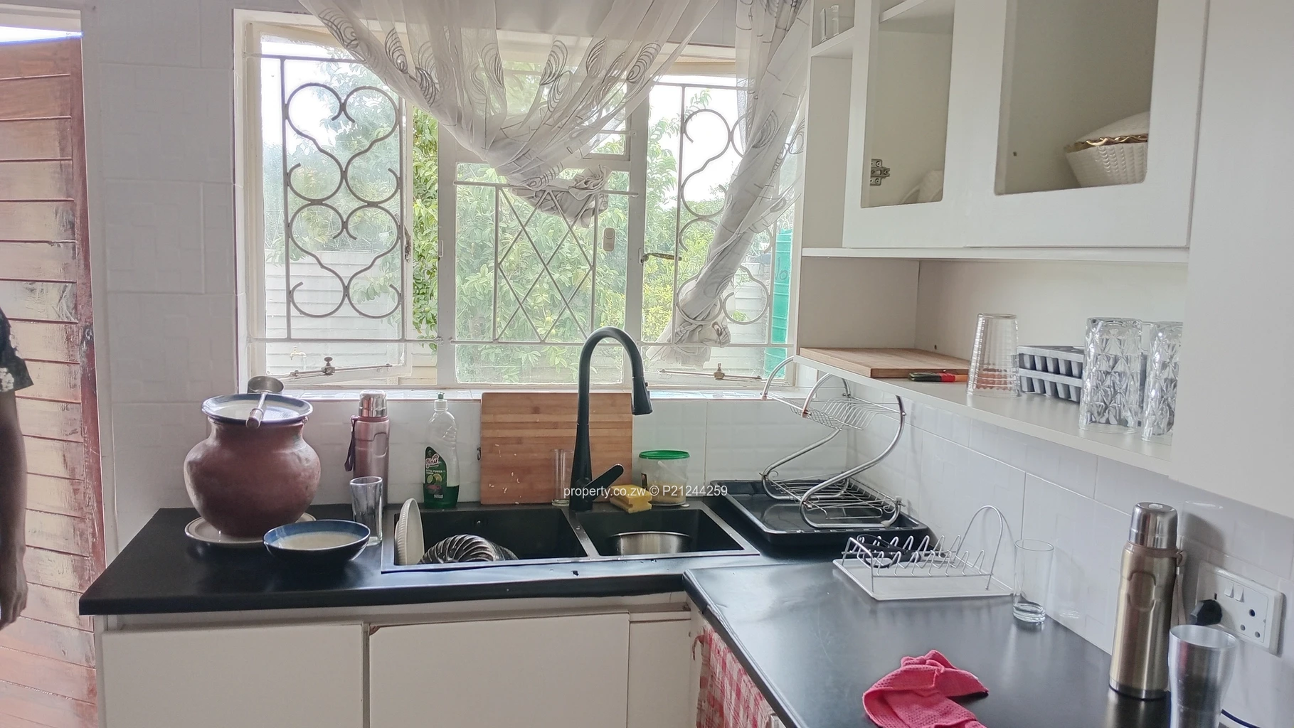3 bedrooms, 2 en-suites, lounge, dining, fitted kitchen, wide front veranda, staff quarters, storage room, paved driveway, razor wire, water tank; 1056 square metres
