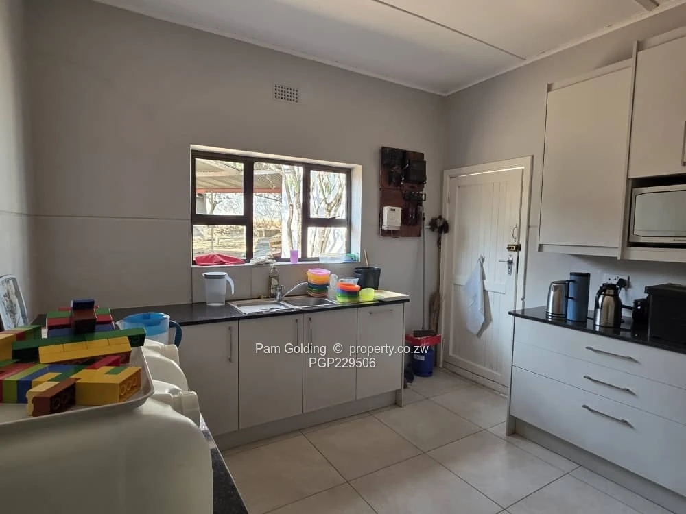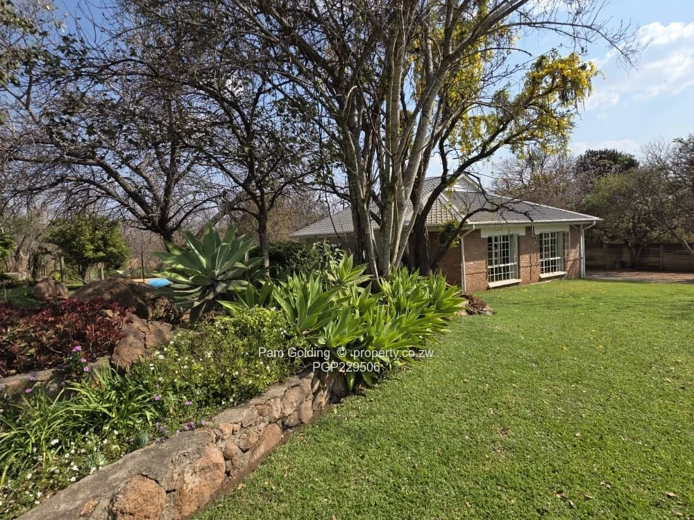 Thanks to a reliable borehole the landscaped garden enhances the external charm, complemented by manicured lawns and surrounding trees that provide both beauty, privacy and much needed shade.