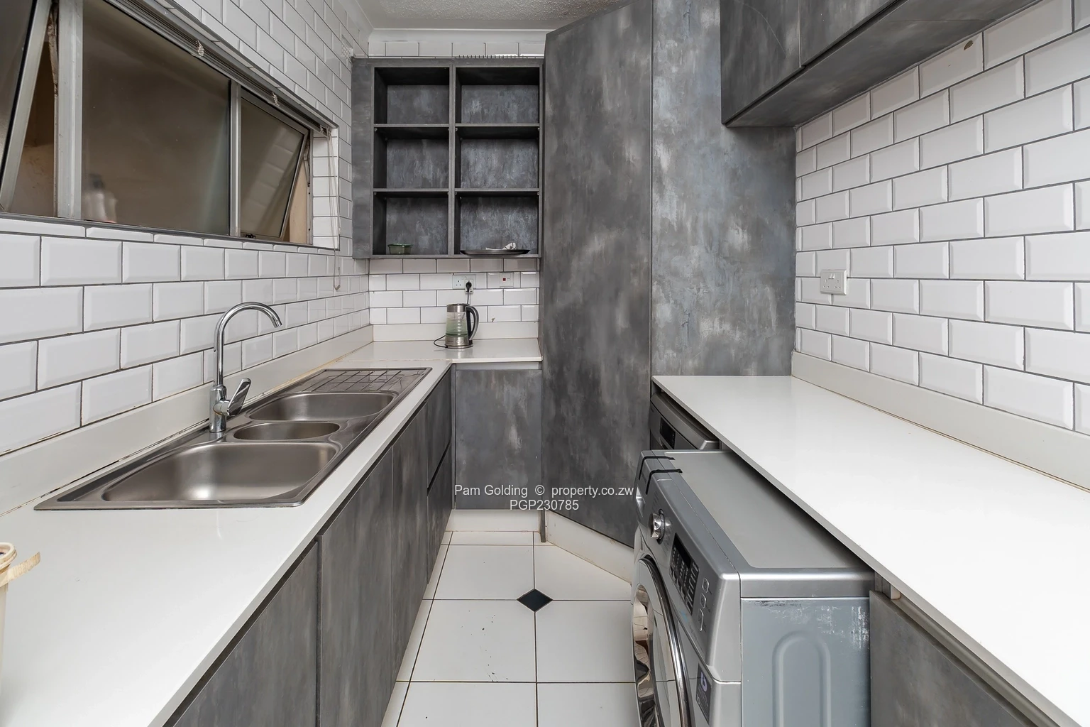 Outside is a pure resort with a functional pool, built in braai area and a beautiful garden with well manicured lawn reliably fed by a prolific borehole plus a water tank. This property has a double lock up garage, walled and gated.