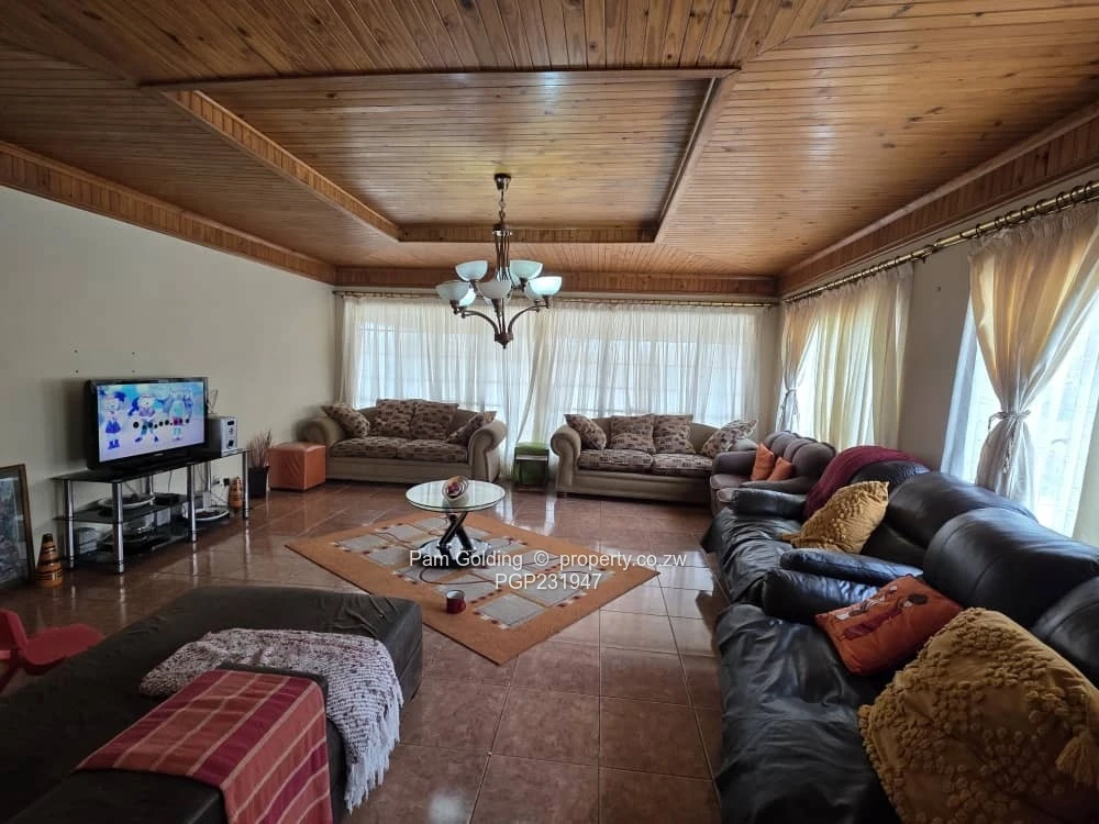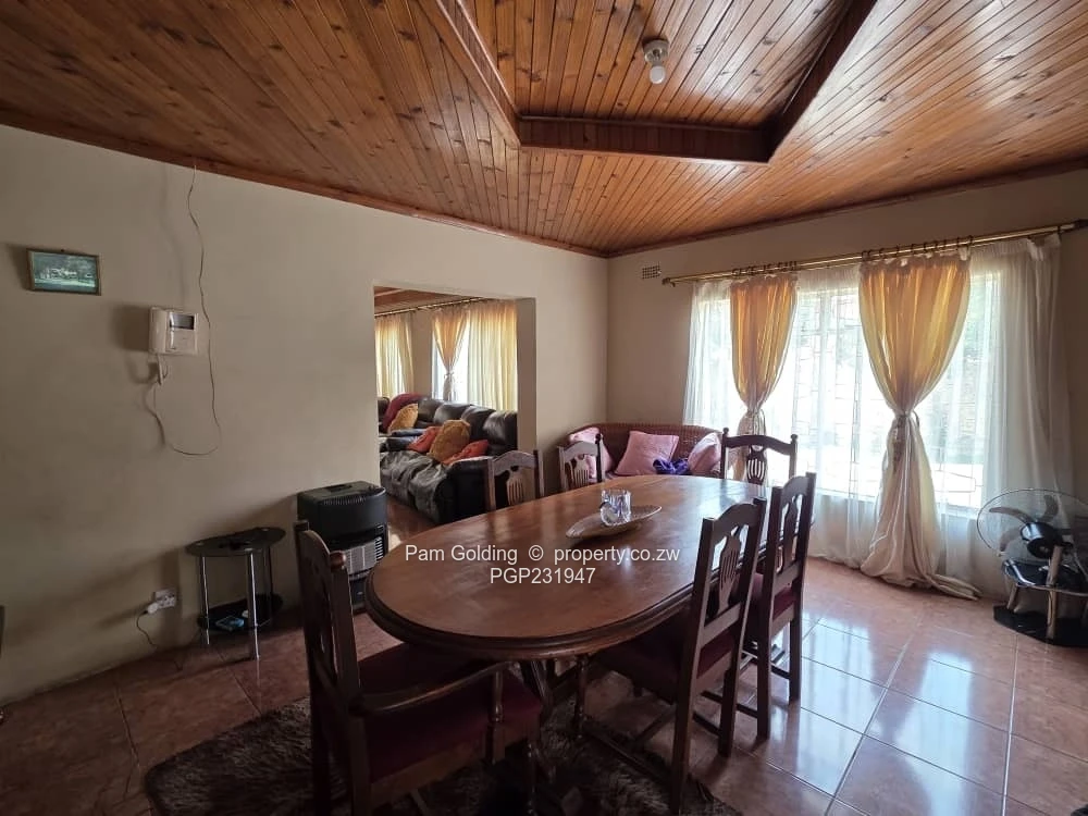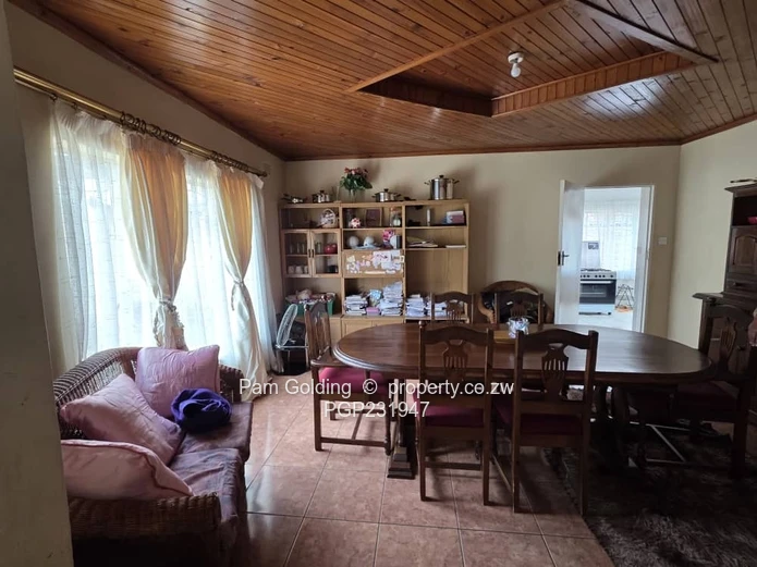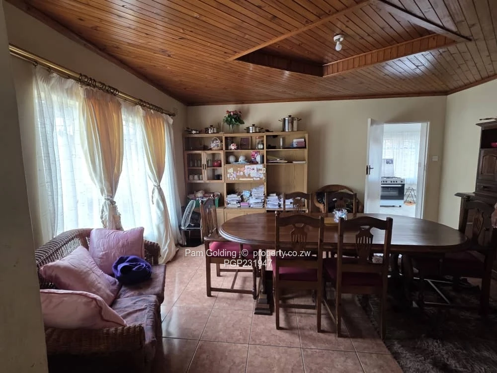 Bright, open-plan lounge and dining area with beautiful pine ceilings