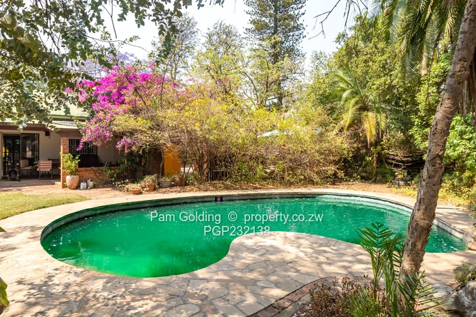 Set on over 6,300sqm of fully walled land, this character-filled family home is in Greendale. From the moment you enter through the heavy-duty electric gate, you can feel the sense of privacy, and tranquillity that makes this property special. With more than 100 mature trees, the garden is a space filled with birdlife, space for kids to roam, and a swimming pool to enjoy. There's even a massive kid's “castle” — perfect for little ones (but also a great office space in the trees).