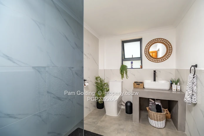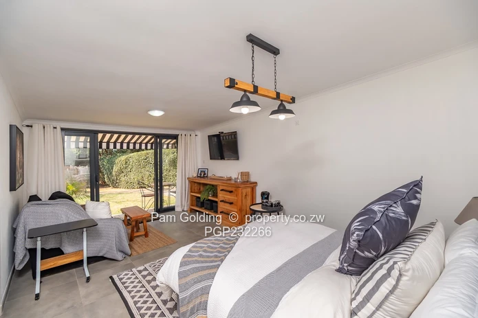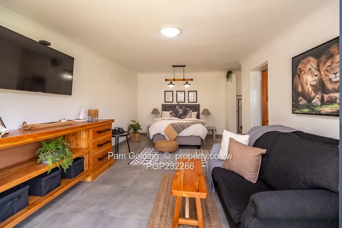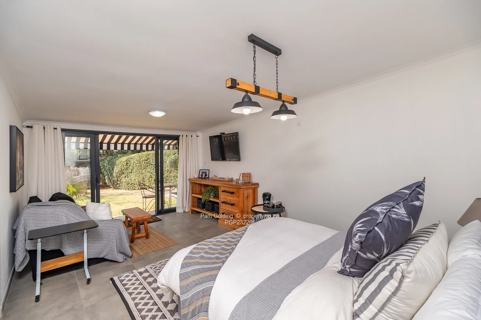 A prolific borehole plus 10,000 litre water tank ensures reliable water supply, while the self-contained guest studio flatlet provides ideal accommodation for visitors or extended family. There is a double car port, single staff quarters, 5KVA solar system, as well as back up 5KVA generator. Alarm and CCTV.