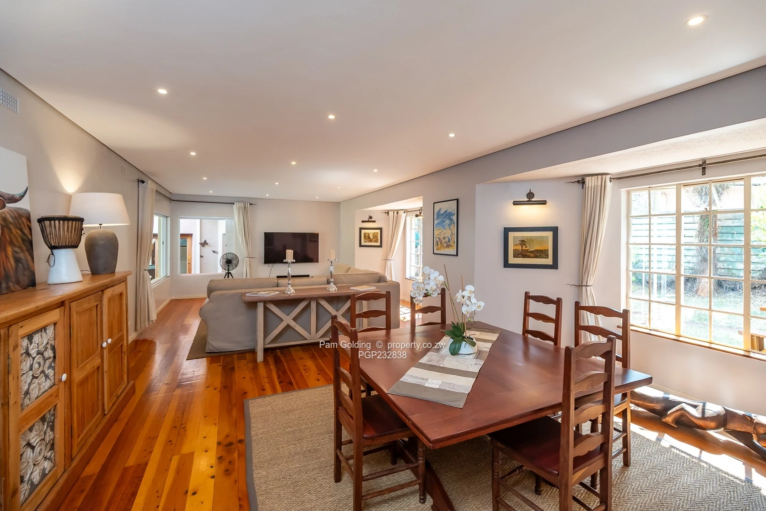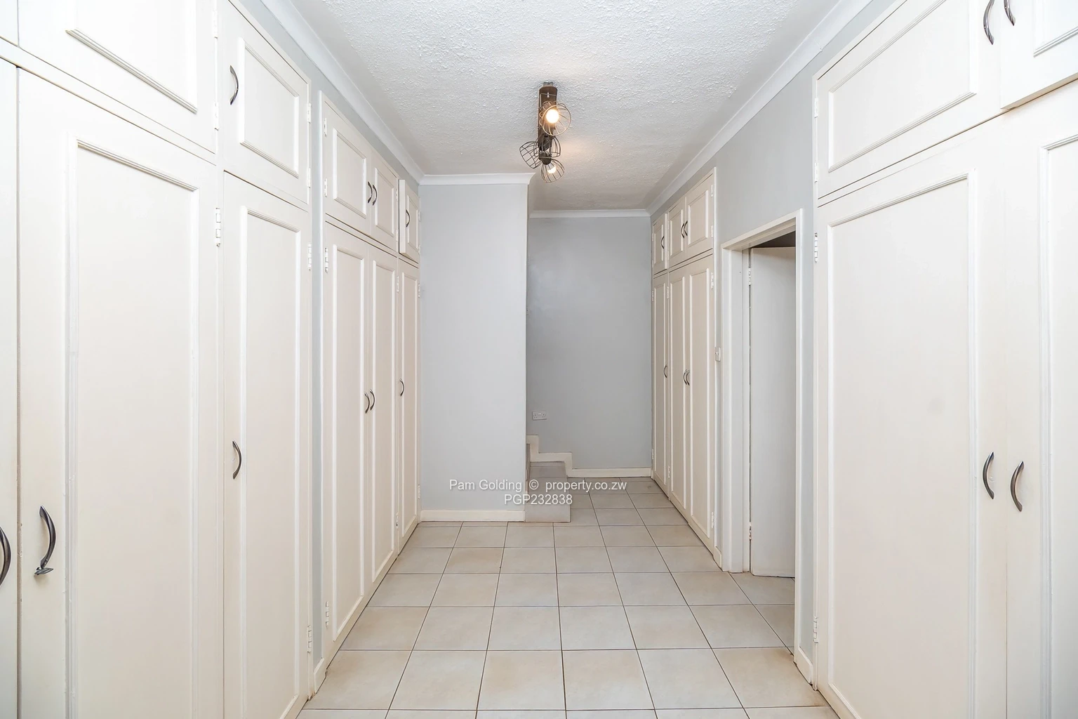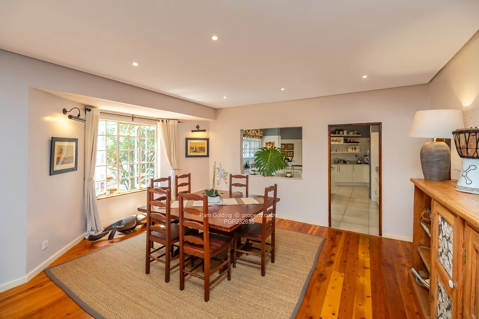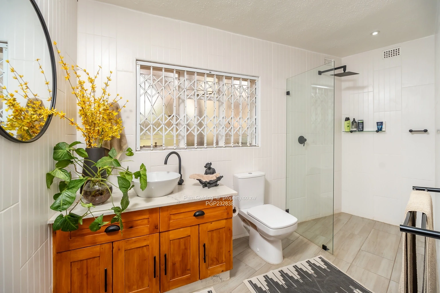 This 4,797sqm property offers space, security, and modern comfort—completely move-in ready. Fully walled and gated, it features an electric fence and external alarm system for peace of mind. The main residence is a newly renovated, single-storey brick home under tile, designed with quality finishes and a practical layout. The left wing includes four bedrooms—two en-suite and two sharing a family bathroom—plus a playroom or second lounge opening onto a covered verandah. The right wing offers a dining area, family lounge, and modern open-plan kitchen with walk-in pantry, scullery, secondary prep area, and built-in office nook. The scullery connects to the back garden, double lock-up garage, and a separate office. The verandah extends to a well-designed entertainment area with bar, storeroom, swimming pool, tennis court, and thatched gazebo. A 5kVA solar system and extensive water storage ensure convenience and sustainability. Ideally located within a 5km radius of Sam Levy’s Village and St John’s School. A two-bedroom staff accommodation completes this exceptional property.