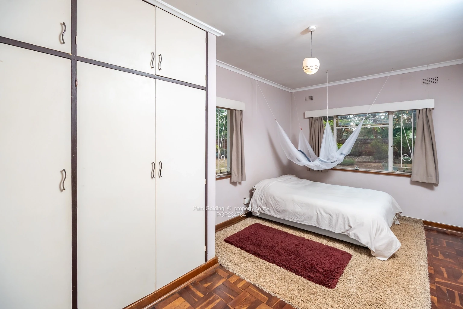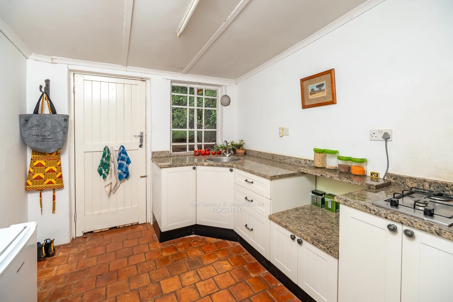There is also a 1 bedroom flatlet that can easily be reconnected to the main house if needed. It includes a bedroom, a fitted kitchen, a lounge, a bathroom with a bath, toilet, and basin.